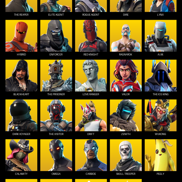 The Reaper, Elite Agent, Omega, Havoc, Warpaint, Rose Team Leader, Darth Vader, Sub Commander, Malik, Love Ranger, Kado Thorne, Red Knight, Zenith, Raven, Dark Voyager, Lynx, Enforcer