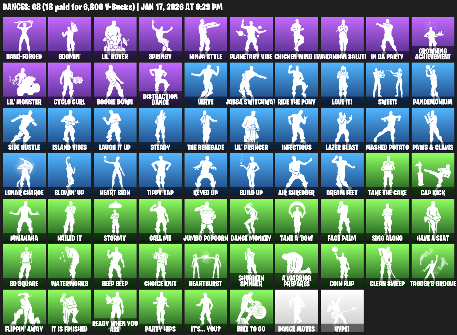 Hand-Forged, Boomin’, Lil’ Rover, Springy, Ninja Style, Planetary Vibe, Chicken Wing It, Wakandan Salute, In Da Party, Crowning Achievement, Cyclo Curl, Boogie Down, Distraction Dance, Verve, Jabba Switchway, Love it!, Sweet!, Pandemonium