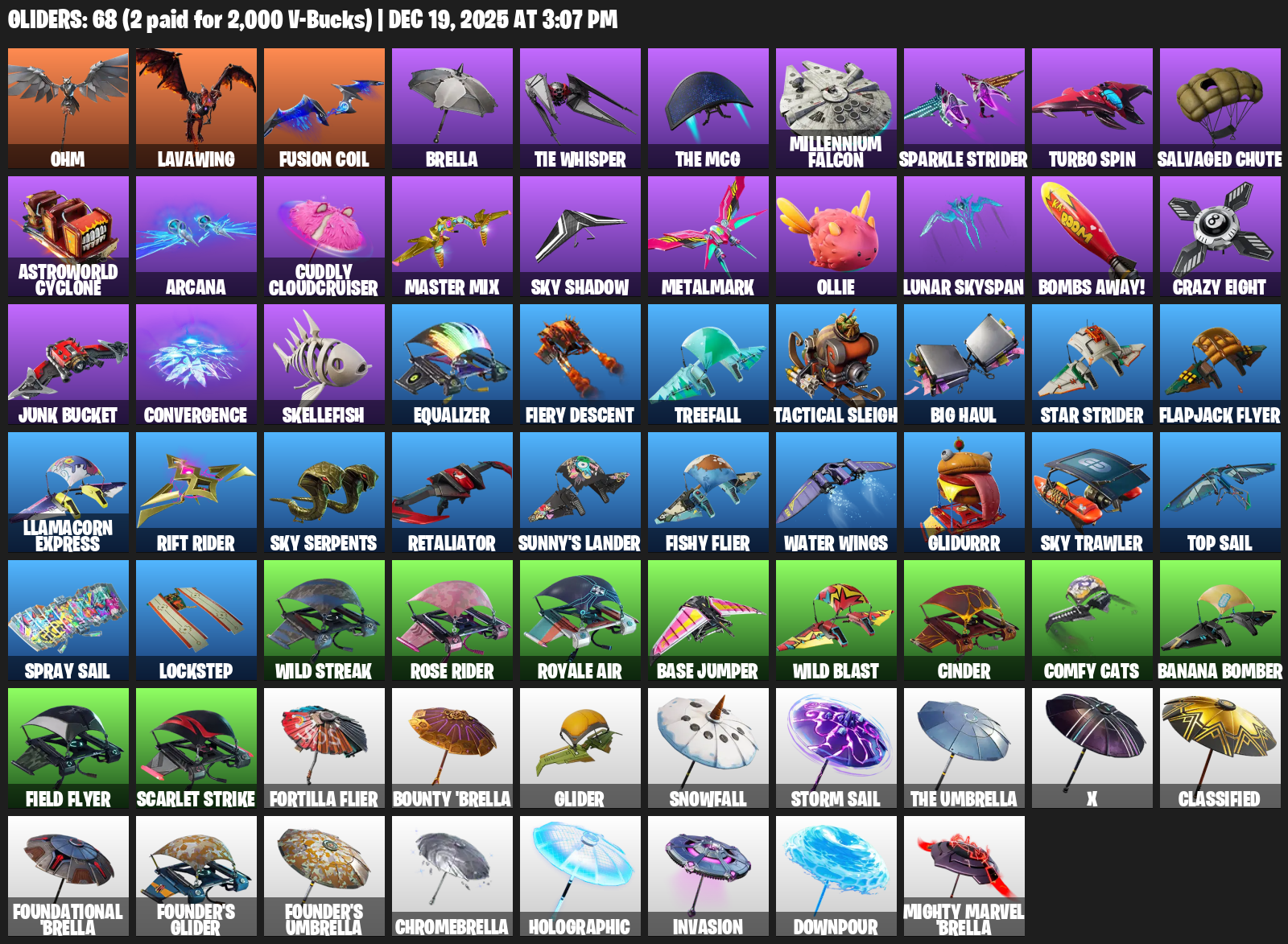 Ohm, Lavawing, Brella, TIE Whisper, Millennium Falcon, Sparkle Strider, Turbo Spin, Salvaged Chute, Astroworld Cyclone, Arcana, Cuddly Cloudcruiser, Master Mix, Metalmark, Ollie, Lunar Skyspan, Bombs Away!, Crazy Eight