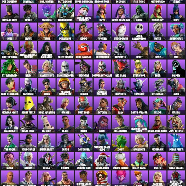 Leviathan Axe, Ol’ Woody, Eon Blades, Shadow Slicer, Scorcher, Groot’s Sap Axes, Aquaman’s Trident, Sludgehammer, Vox, Swag Smasher, Spider Snare, Dragon’s Claw, Scratchmark, Power Claws, Gilded Scepter, Highlight Strikers