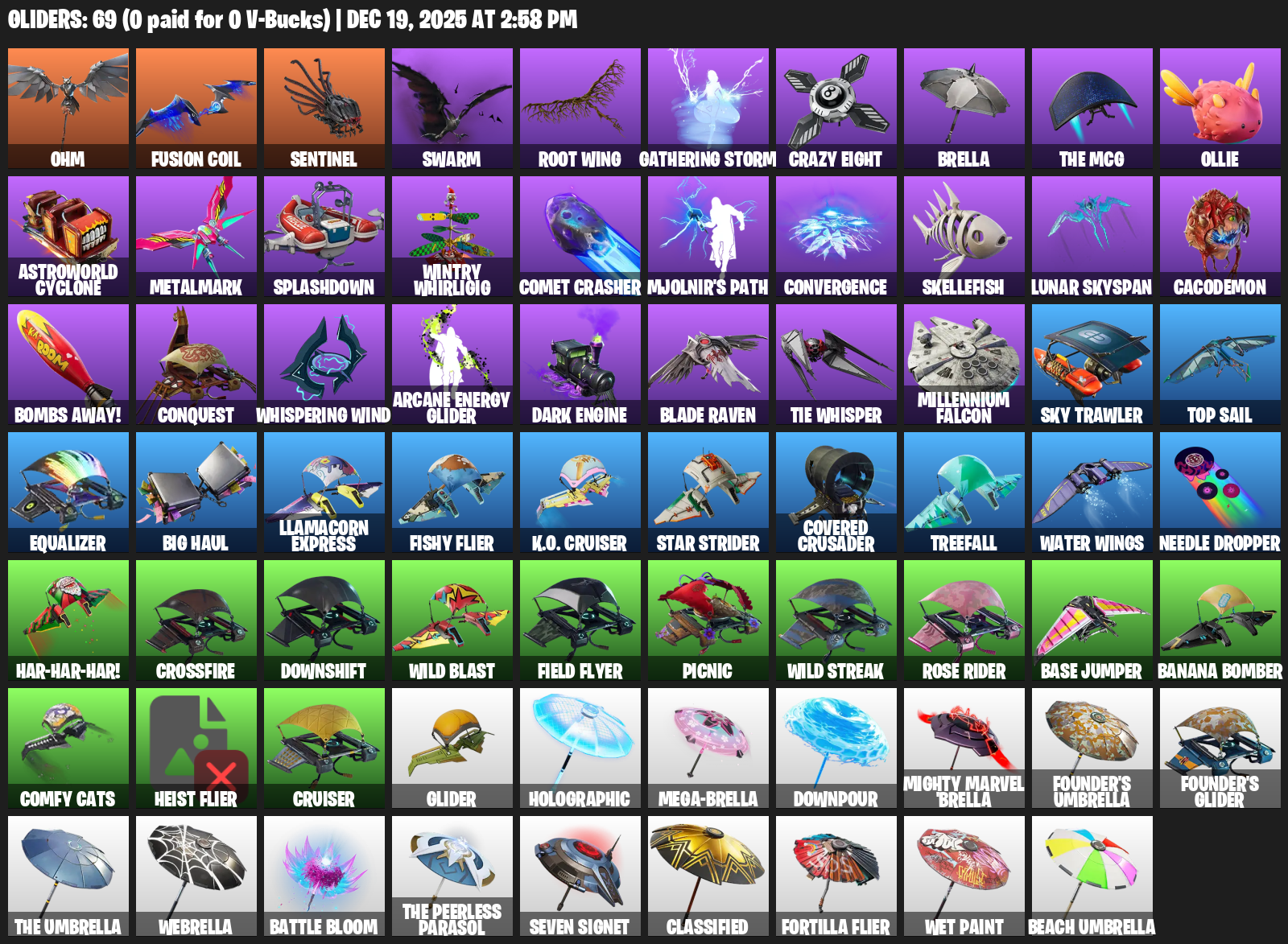 Ohm, Sentinel, Swarm, Root Wing, Gathering Storm, Crazy Eight, Brella, Ollie, Astroworld Cyclone, Metalmark, Splashdown, Wintry Whirligig, Comet Crasher, Mjolnir’s Path, Convergence, Skellefish, Lunar Skyspan, Cacodemon