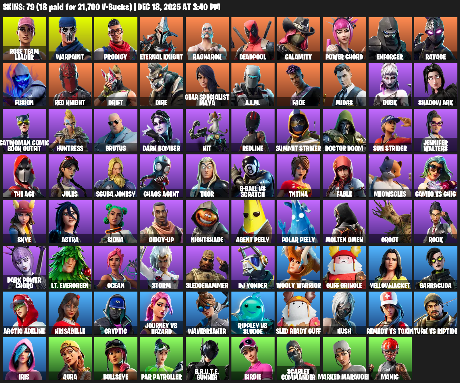 Gear Specialist Maya, Rose Team Leader, Warpaint, Prodigy, Eternal Knight, Ragnarok, Deadpool, Calamity, Power Chord, Enforcer, Ravage, Fusion, Drift, Dire, A.I.M., Fade, Midas, Dusk, Shadow Ark