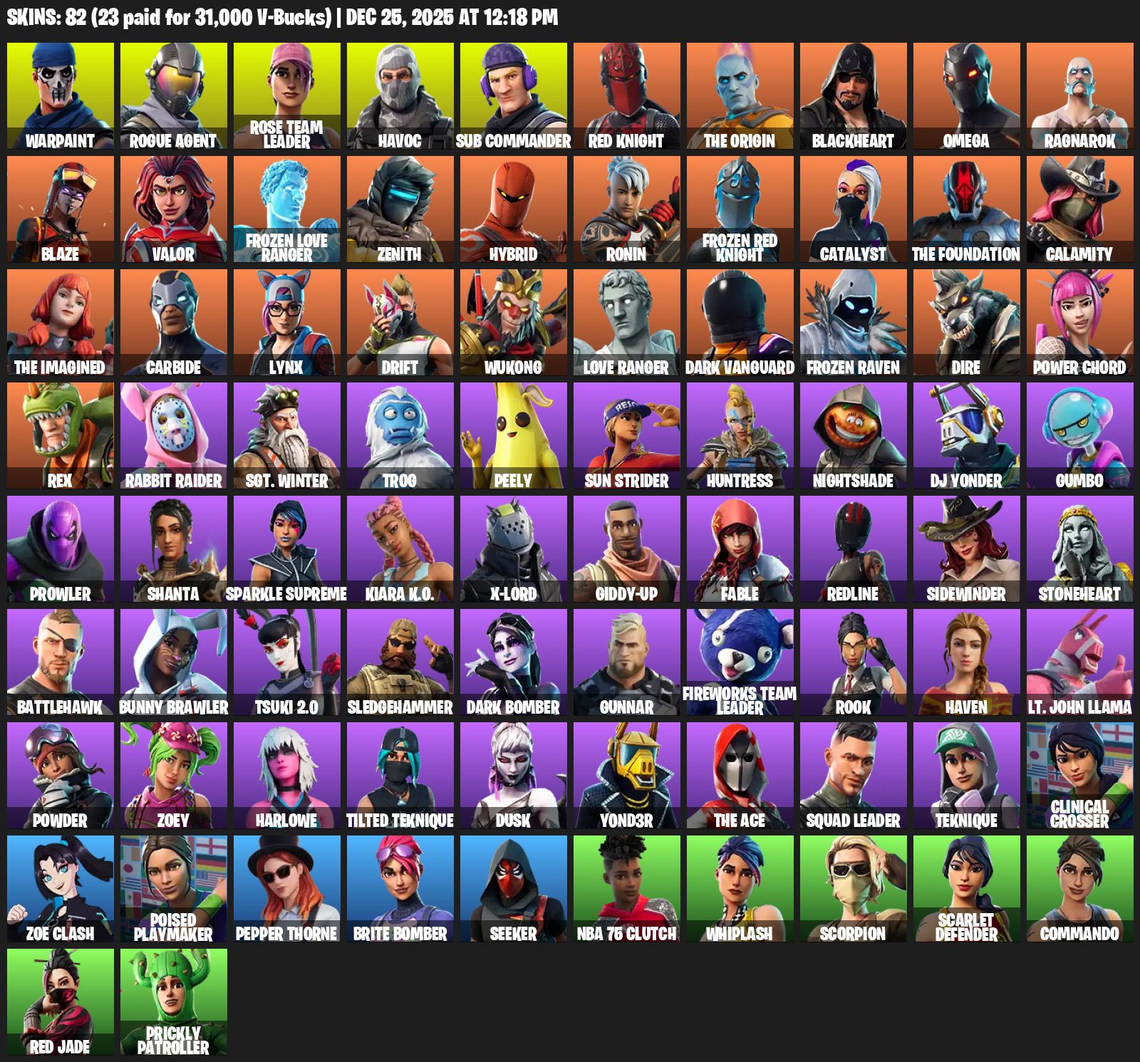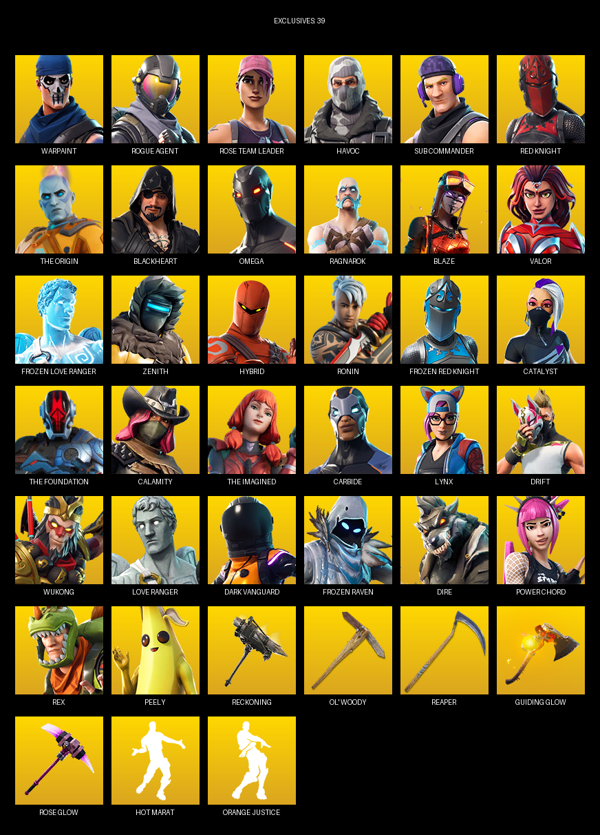 Omega, Warpaint, Rogue Agent, Rose Team Leader, Havoc, Sub Commander, Red Knight, The Origin, Blackheart, Ragnarok, Blaze, Valor, Frozen Love Ranger, Zenith, Hybrid, Ronin, Catalyst, Calamity
