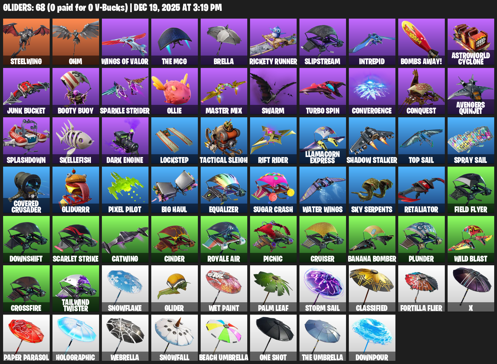 Steelwing, Ohm, Brella, Rickety Runner, Slipstream, Intrepid, Bombs Away!, Astroworld Cyclone, Junk Bucket, Booty Buoy, Sparkle Strider, Ollie, Swarm, Turbo Spin, Convergence, Conquest, Avengers Quinjet