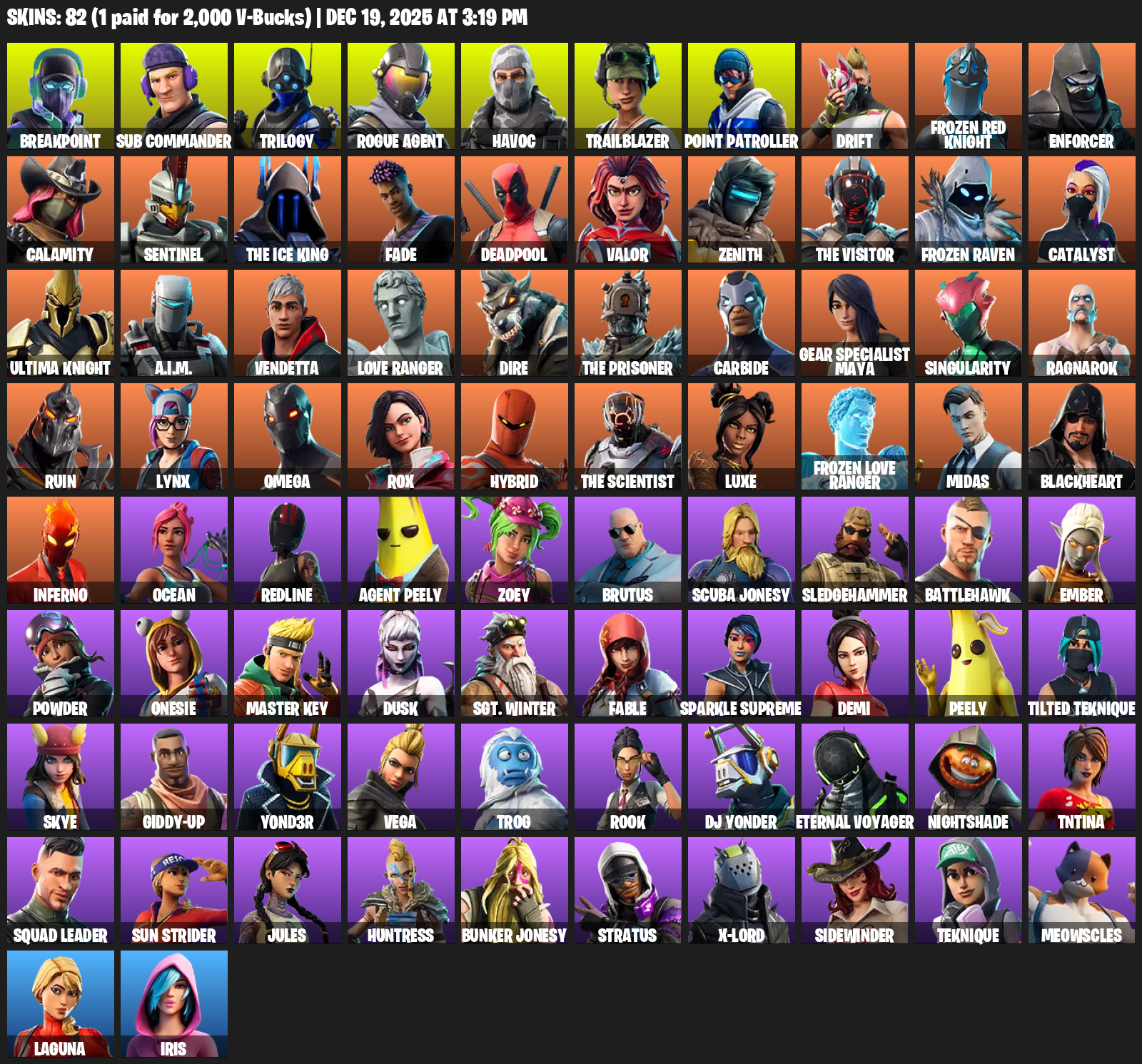 Point Patroller, Gear Specialist Maya, Omega, Breakpoint, Sub Commander, Trilogy, Rogue Agent, Havoc, Trailblazer, Drift, Frozen Red Knight, Enforcer, Calamity, Sentinel, The Ice King, Fade, Deadpool, Valor, Zenith