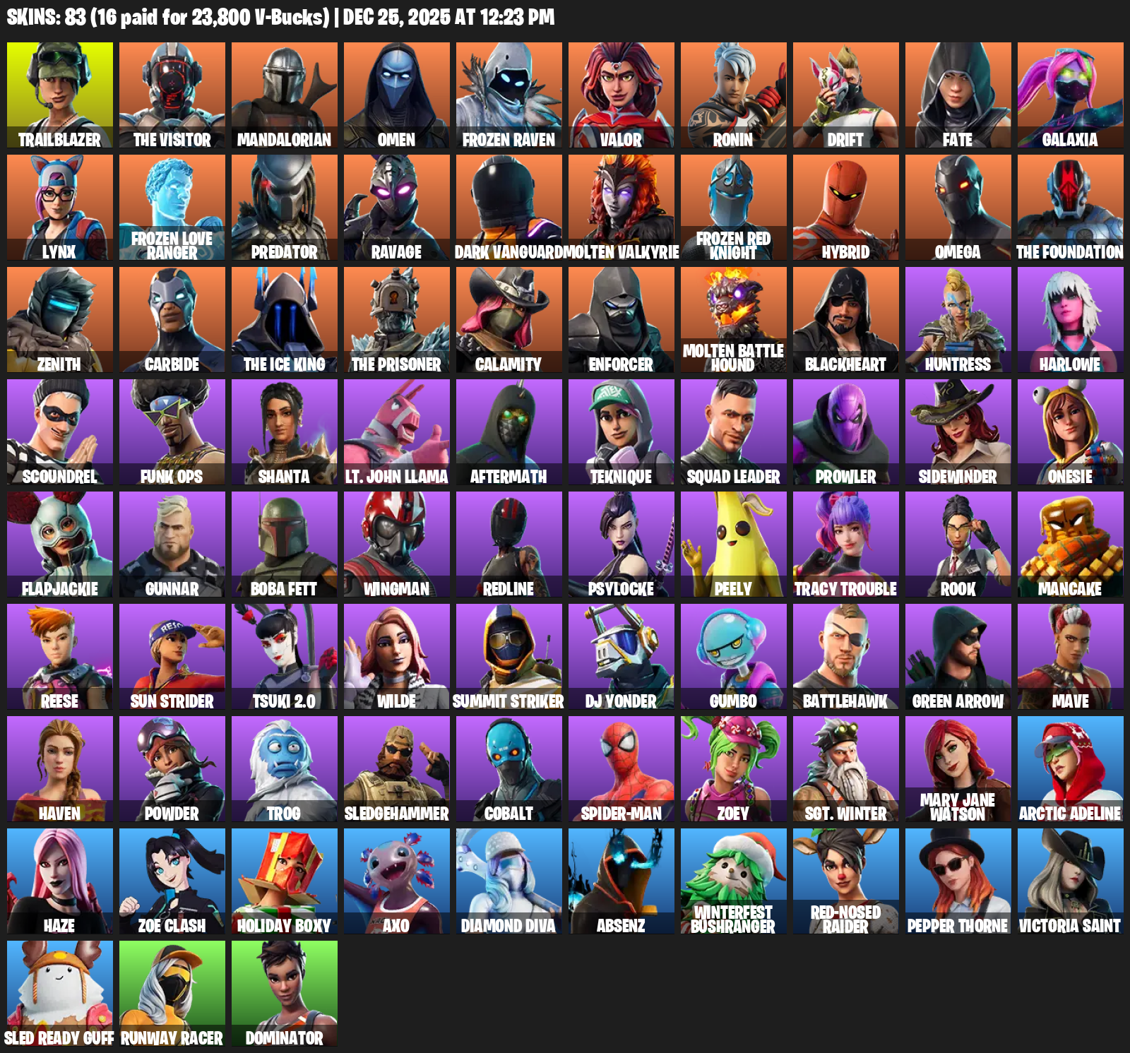 Omega, Trailblazer, The Visitor, Mandalorian, Omen, Frozen Raven, Valor, Ronin, Drift, Fate, Galaxia, Lynx, Predator, Ravage, Dark Vanguard, Molten Valkyrie, Hybrid
