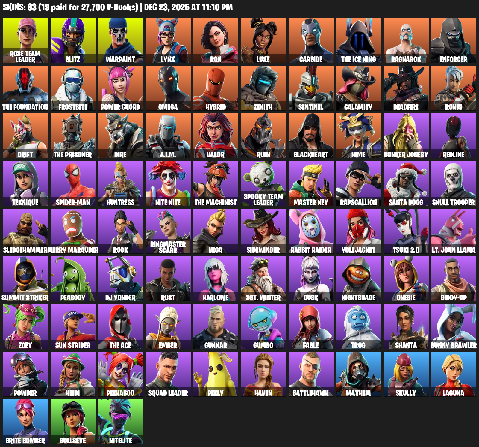 [PC/PSN/XBOX] | 83 skins | 850 V-bucks | OG STW | Omega | Reaper Axe | Rose Team Leader | Blitz | Warpaint | Lynx | Rox | Luxe | Carbide | #EMT8673