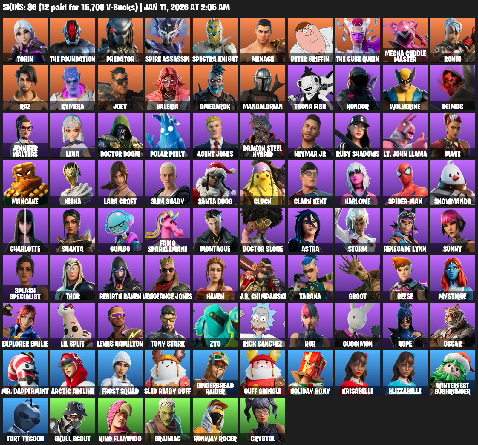 [PC/PSN/XBOX] | 86 skins | Lara Croft | Torin | The Foundation | Predator | Spire Assassin | Spectra Knight | Menace | Peter Griffin | #JGQ8769