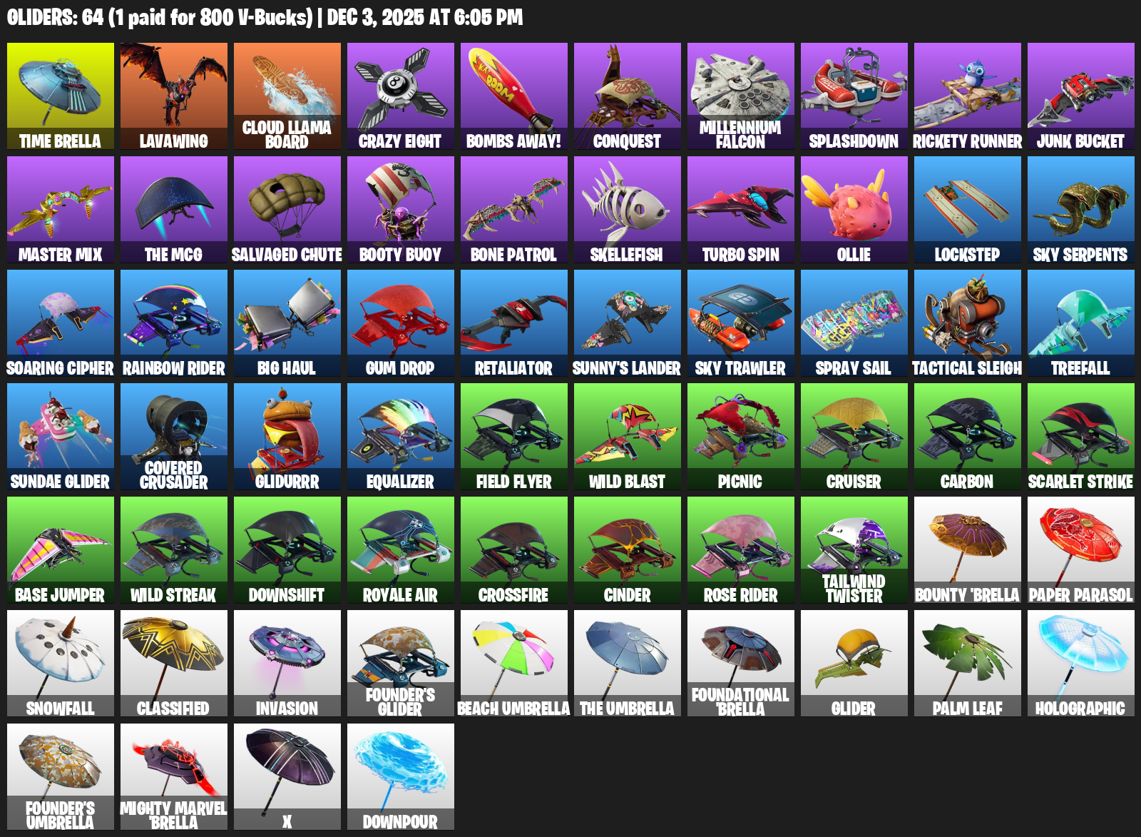 Time Brella, Lavawing, Cloud Llama Board, Crazy Eight, Bombs Away!, Conquest, Millennium Falcon, Splashdown, Rickety Runner, Junk Bucket, Salvaged Chute, Booty Buoy, Bone Patrol, Skellefish, Turbo Spin, Ollie, Lockstep, Sky Serpents