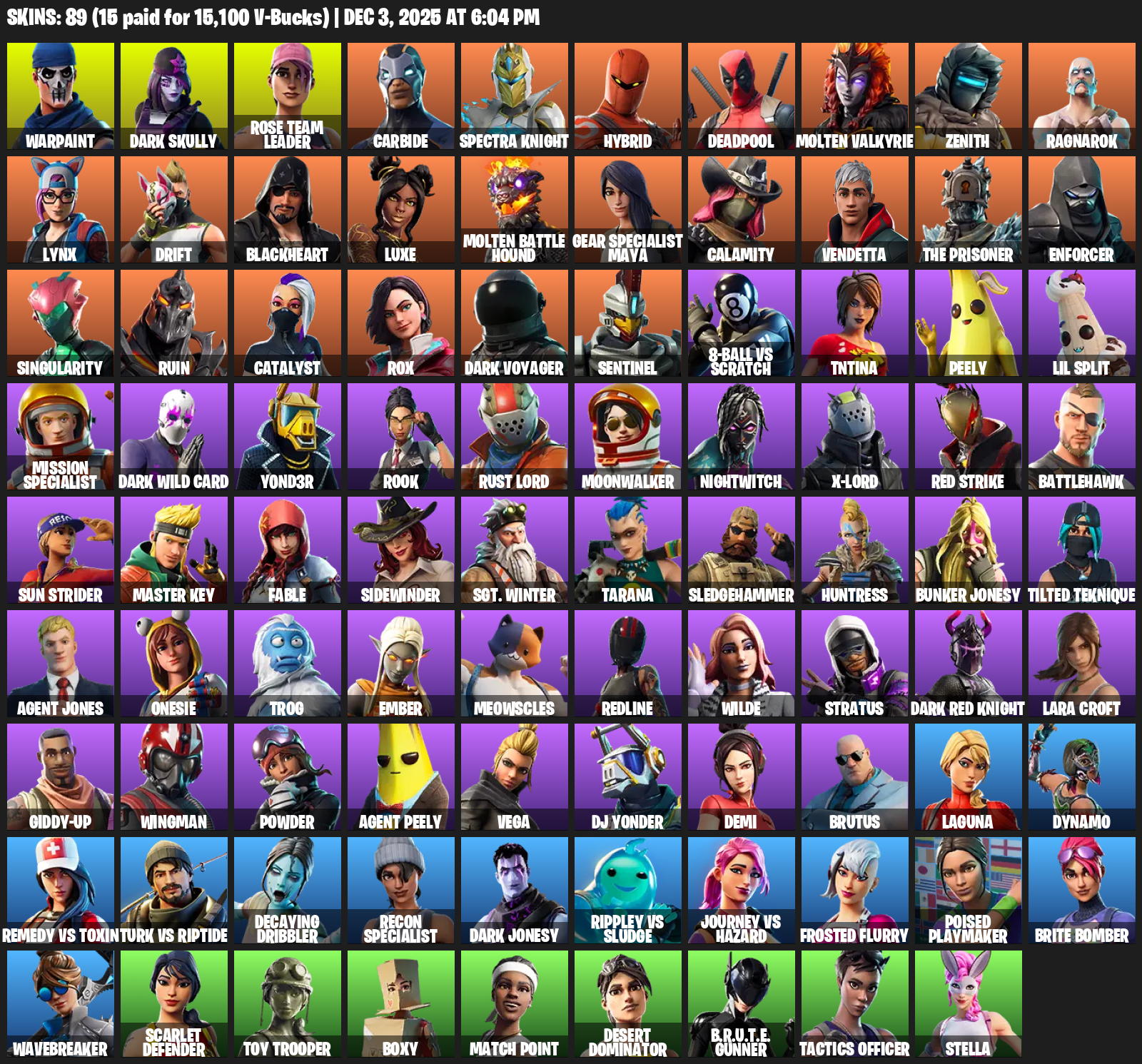 [PC/PSN/XBOX] | 89 skins | Take The L | OG STW | Lara Croft | Reaper Axe | Warpaint | Dark Skully | Rose Team Leader | Carbide | #WMP3248