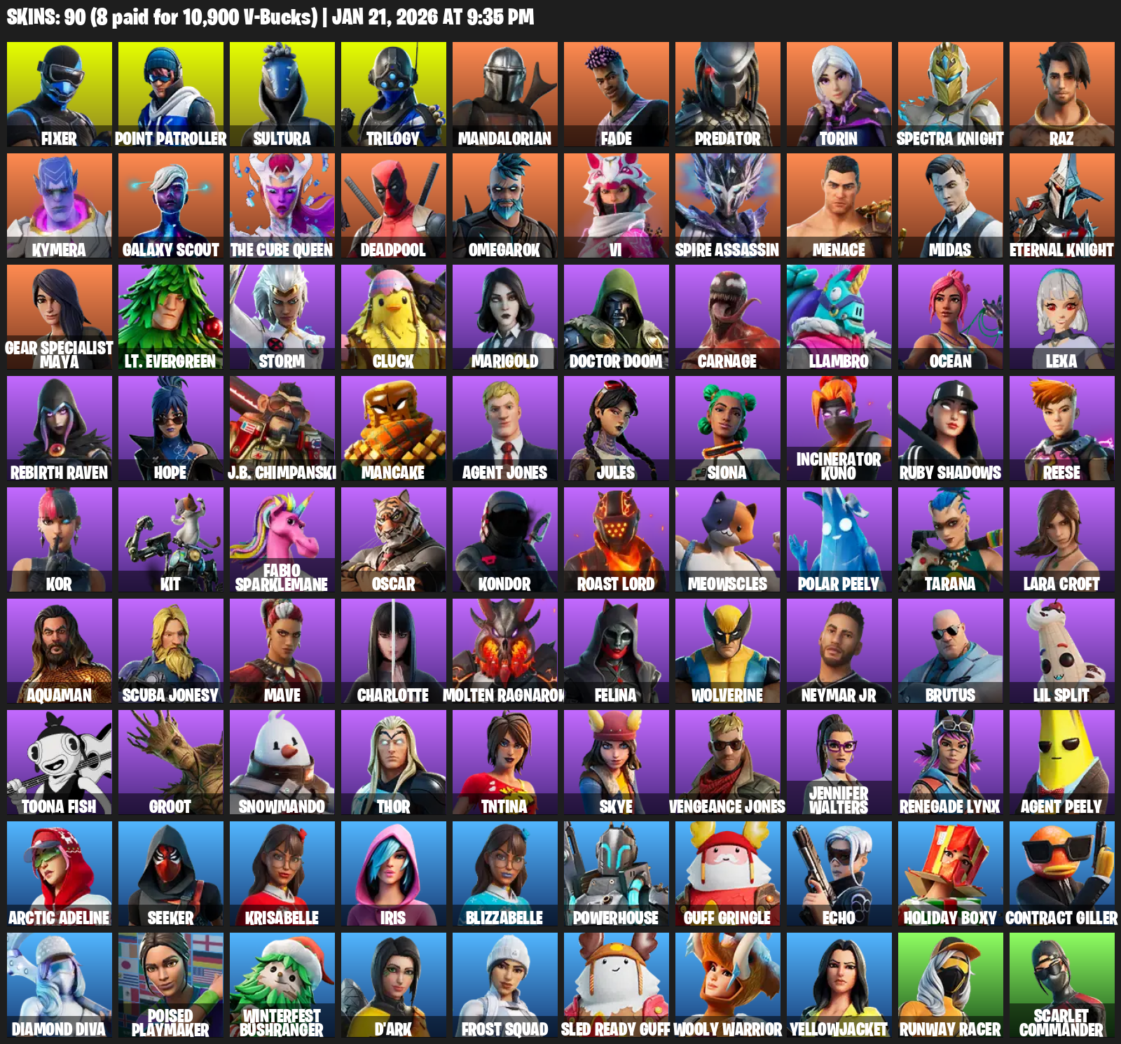 [PC/PSN/XBOX] | 90 skins | 1000 V-bucks | Lara Croft | Fixer | Point Patroller | Sultura | Trilogy | Mandalorian | Fade | Predator | Torin | #LNX8946