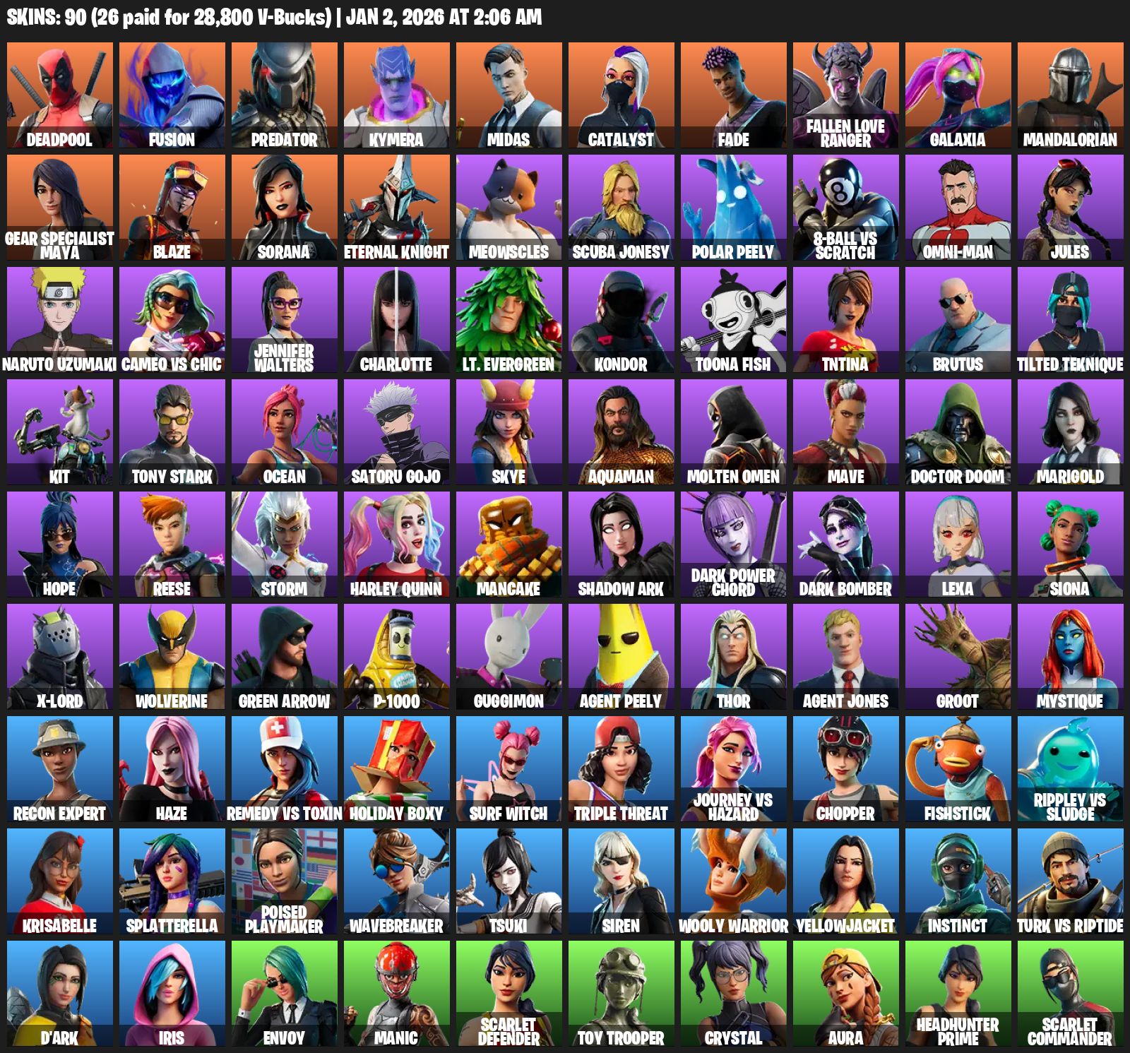 [PC/PSN/XBOX] | 90 skins | Leviathan Axe | Deadpool | Fusion | Predator | Kymera | Midas | Catalyst | Fade | Fallen Love Ranger | Galaxia | #BRI7299