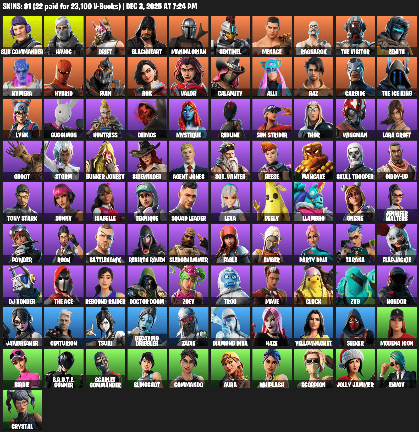 Lara Croft, Sub Commander, Havoc, Drift, Blackheart, Mandalorian, Sentinel, Menace, Ragnarok, The Visitor, Zenith, Kymera, Hybrid, Ruin, Rox, Valor, Calamity, Alli, Raz, Carbide