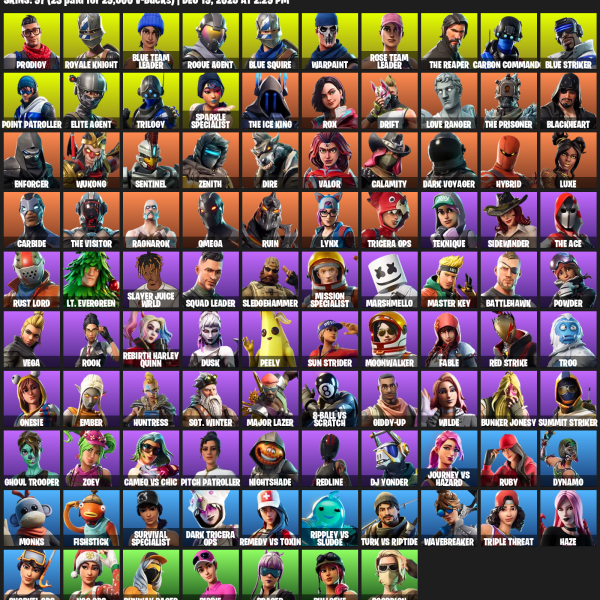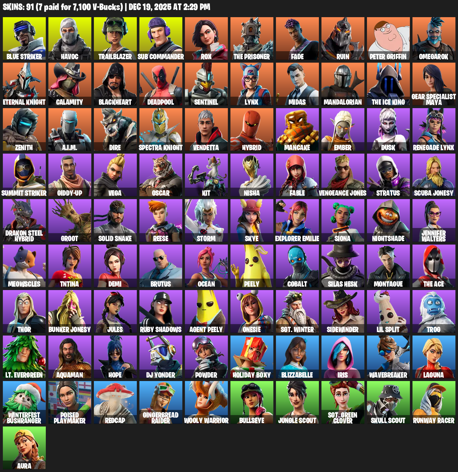 Gear Specialist Maya, Blue Striker, Havoc, Trailblazer, Sub Commander, Rox, The Prisoner, Fade, Ruin, Peter Griffin, Omegarok, Eternal Knight, Calamity, Blackheart, Deadpool, Sentinel, Lynx, Midas, Mandalorian