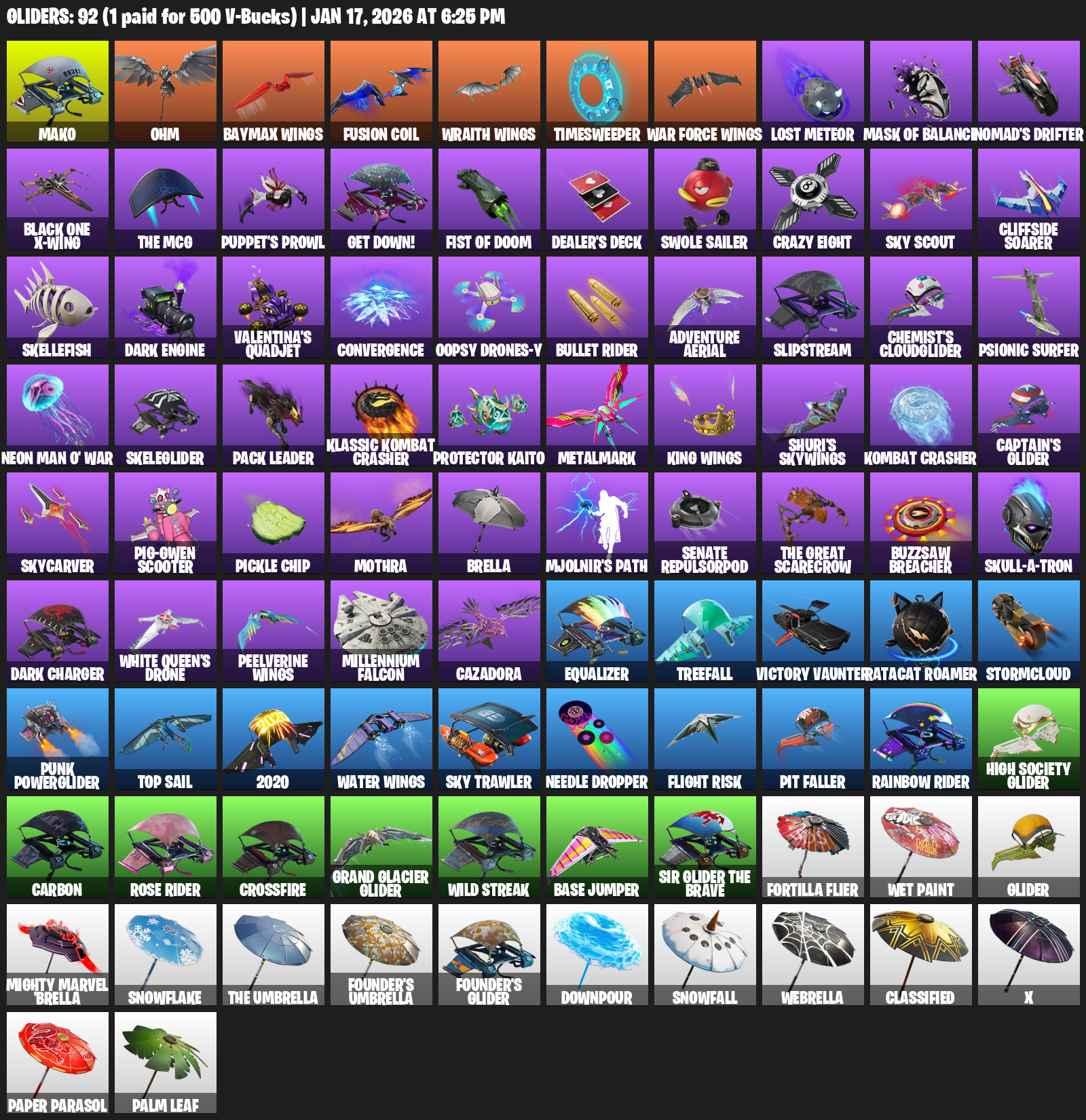 Mako, Ohm, Baymax Wings, Timesweeper, Lost Meteor, Black One X-wing, Puppet’s Prowl, Get Down!, Dealer’s Deck, Swole Sailer, Crazy Eight, Sky Scout, Cliffside Soarer