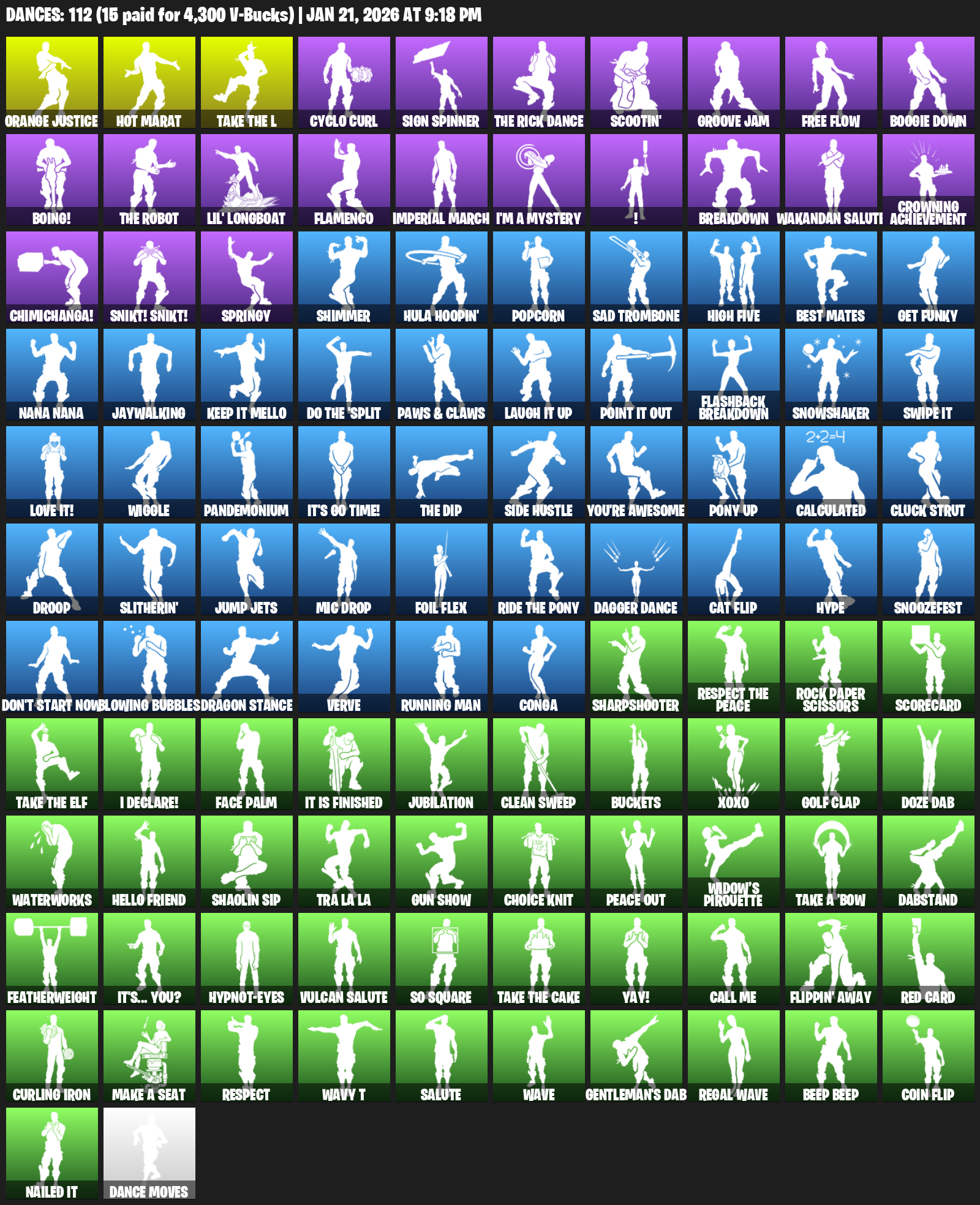 Hot Marat, Orange Justice, Cyclo Curl, Sign Spinner, Scootin’, Groove Jam, Free Flow, Boogie Down, Boing!, Lil’ Longboat, Flamenco, Imperial March, I’m a Mystery, !, Breakdown, Wakandan Salute, Crowning Achievement