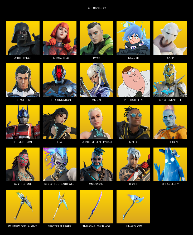 Darth Vader, The Imagined, Twyn, Nezumi, Snap, Mizuki, Peter Griffin, Spectra Knight, Optimus Prime, Era, Paradigm (Reality-659), Malik, Kado Thorne, Omegarok, Ronin, Tsuki 2.0