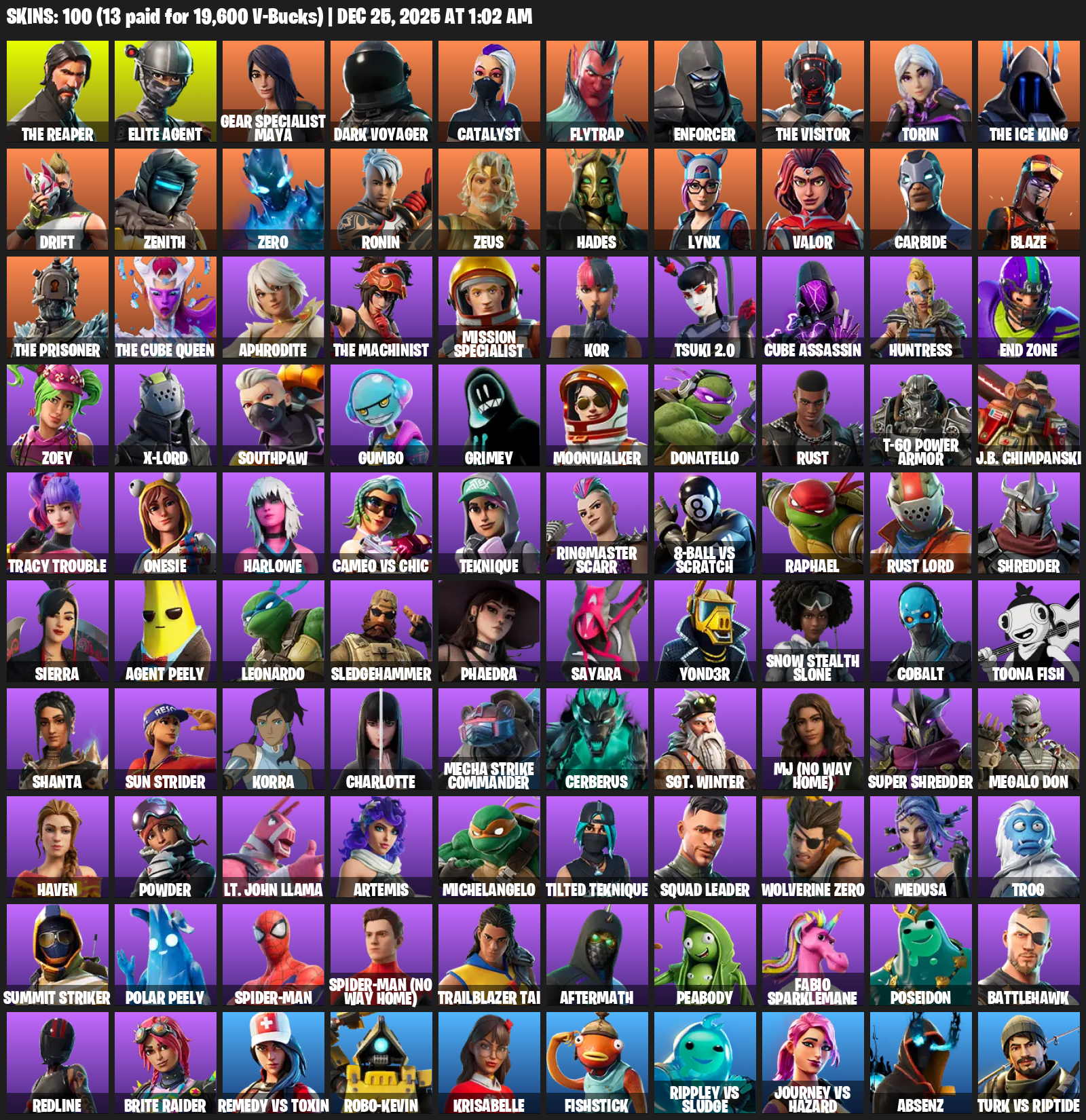 The Reaper, Elite Agent, Gear Specialist Maya, Dark Voyager, Catalyst, Flytrap, Enforcer, Torin, Drift, Zenith, Zero, Ronin, Zeus, Hades, Lynx, Valor, Carbide, Blaze