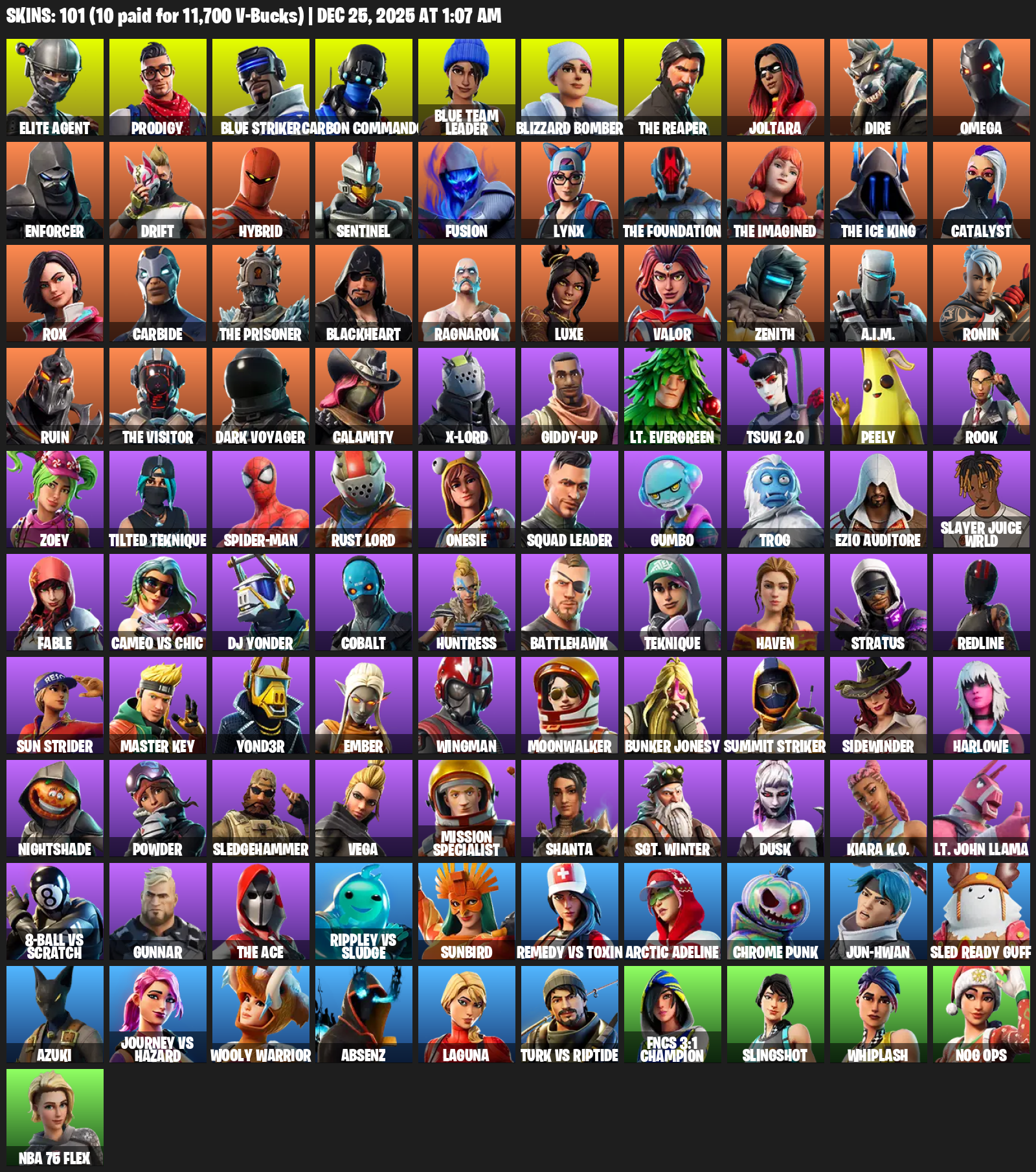 [PC/XBOX] | 101 skins | Take The L | The Reaper | Elite Agent | Omega | Prodigy | Blue Striker | Carbon Commando | Blue Team Leader | #OBT4594