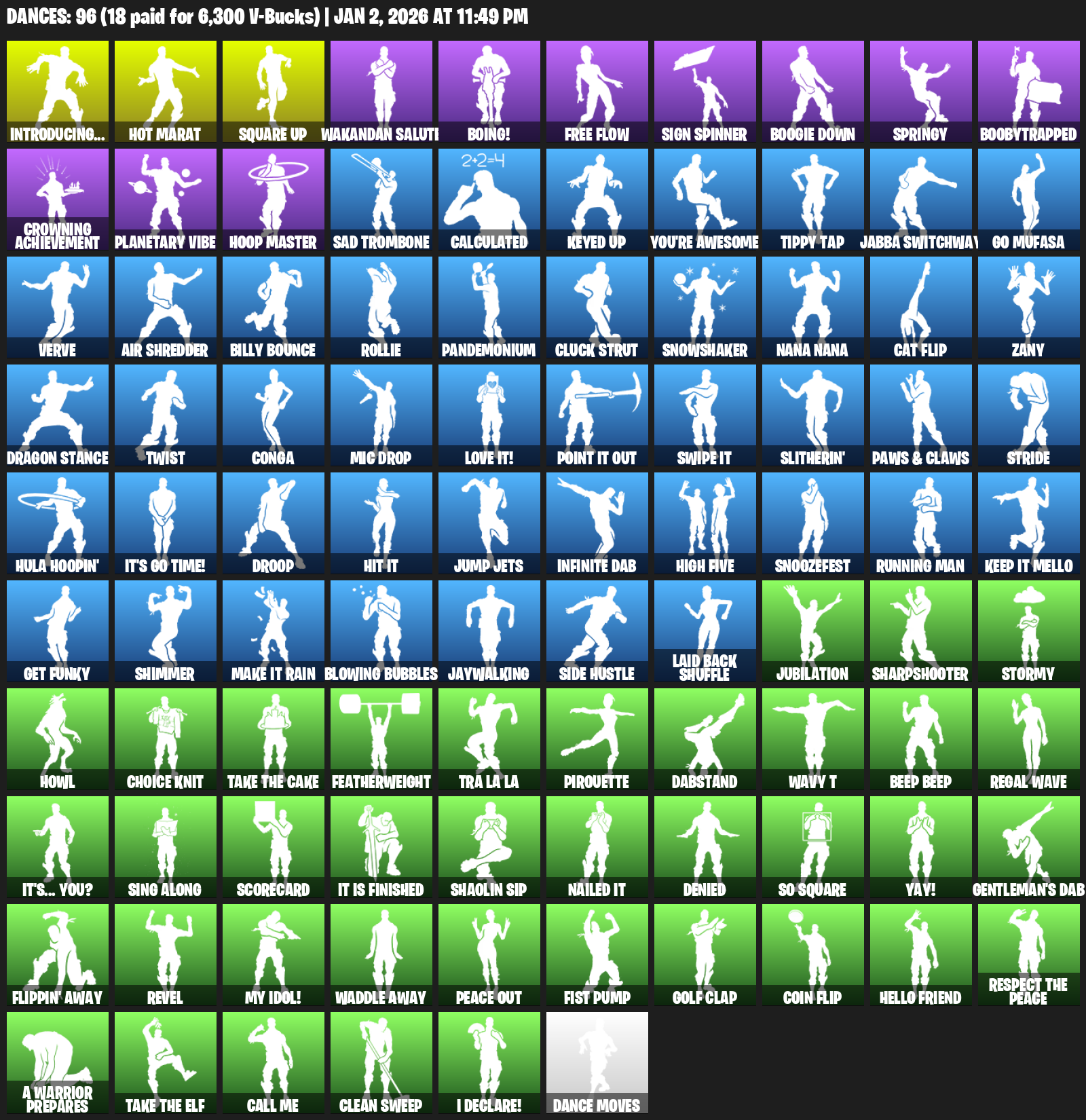 Introducing…, Hot Marat, Square Up, Wakandan Salute, Boing!, Free Flow, Sign Spinner, Boogie Down, Springy, Boobytrapped, Crowning Achievement, Planetary Vibe, Hoop Master, Sad Trombone, Calculated, You’re Awesome, Tippy Tap, Jabba Switchway, Go Mufasa