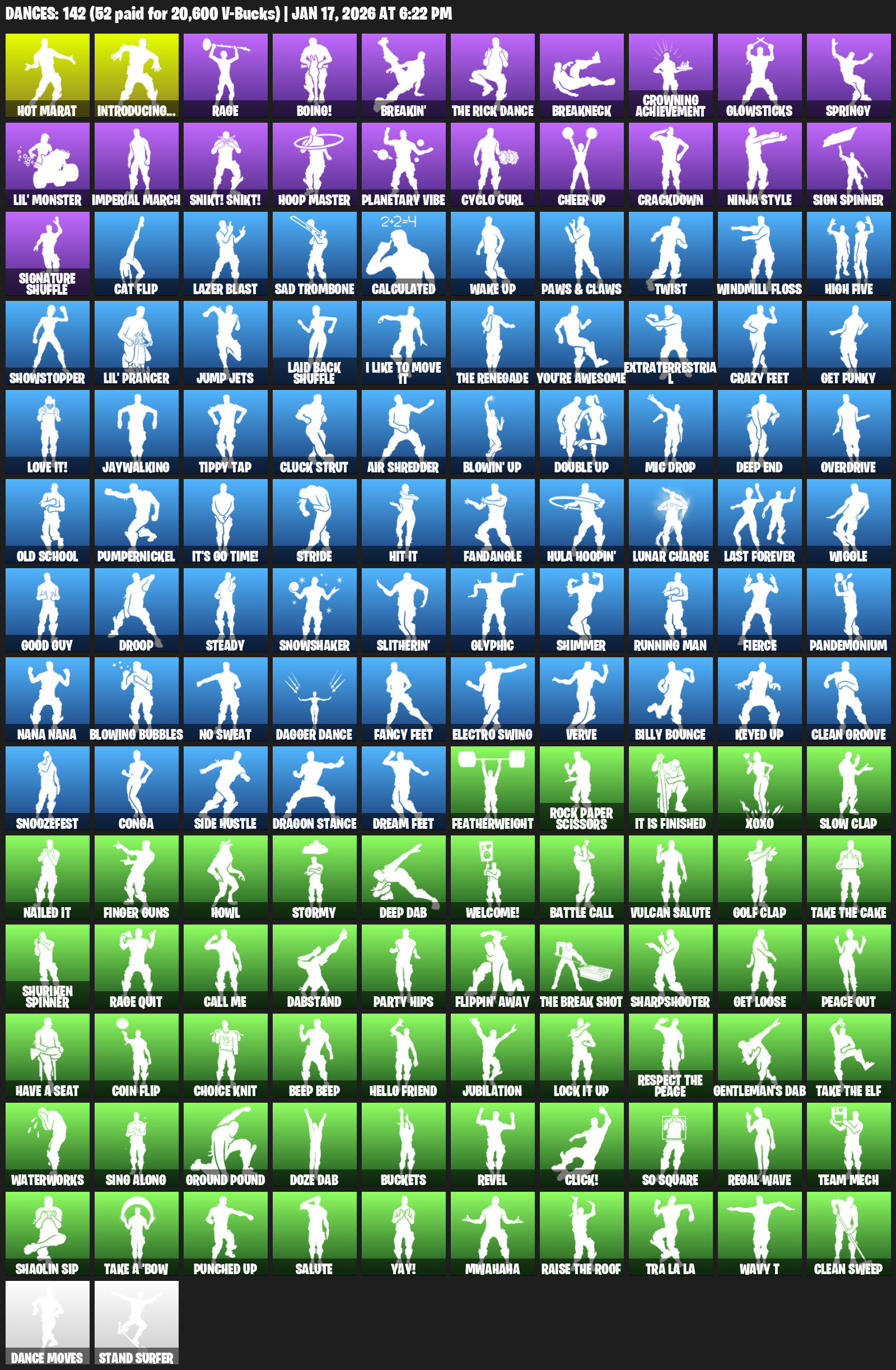 Hot Marat, Introducing…, Rage, Boing!, Breakin’, Breakneck, Crowning Achievement, Glowsticks, Springy, Lil’ Monster, Imperial March, Snikt! Snikt!, Hoop Master, Planetary Vibe, Cyclo Curl, Cheer Up, Crackdown, Ninja Style, Sign Spinner