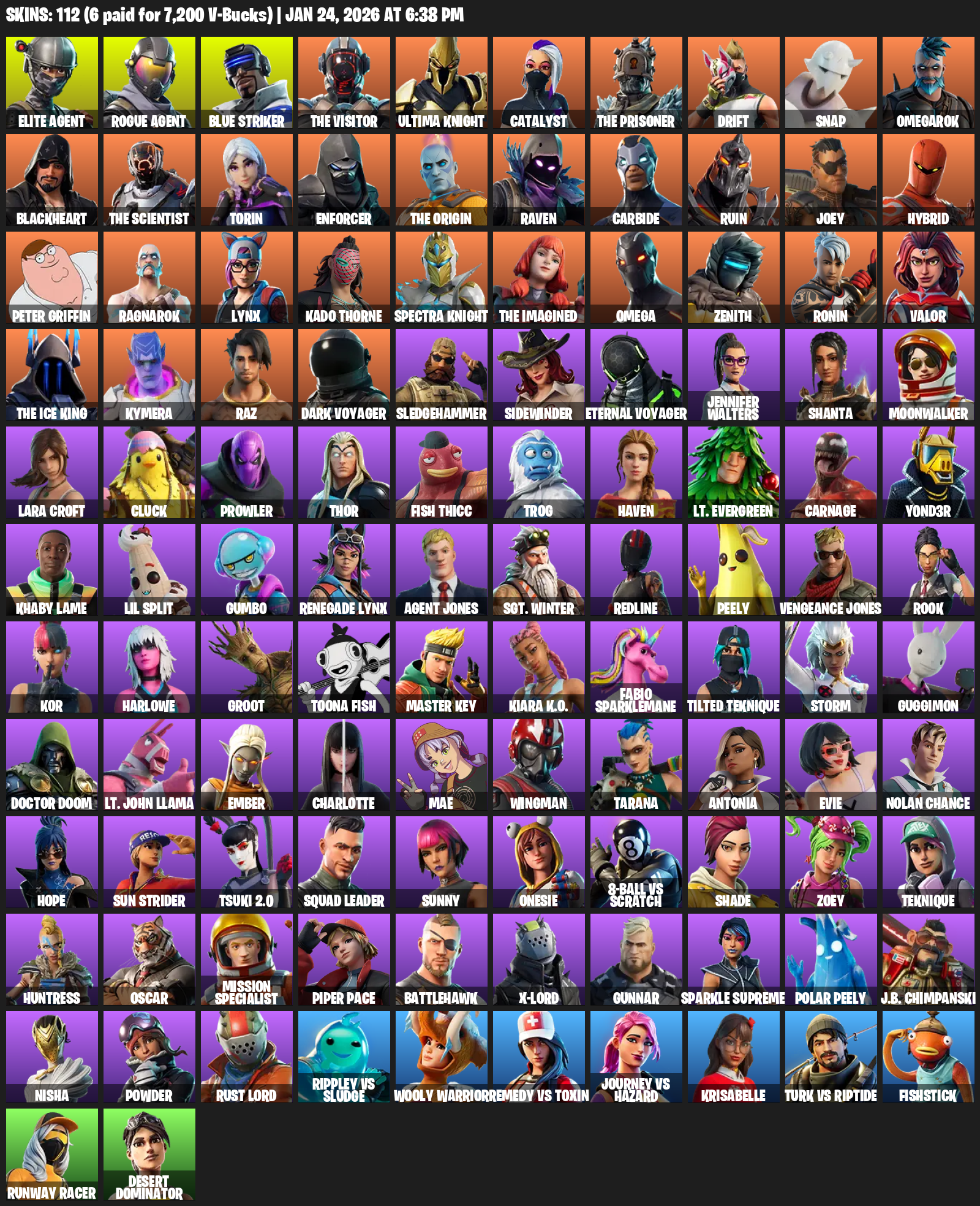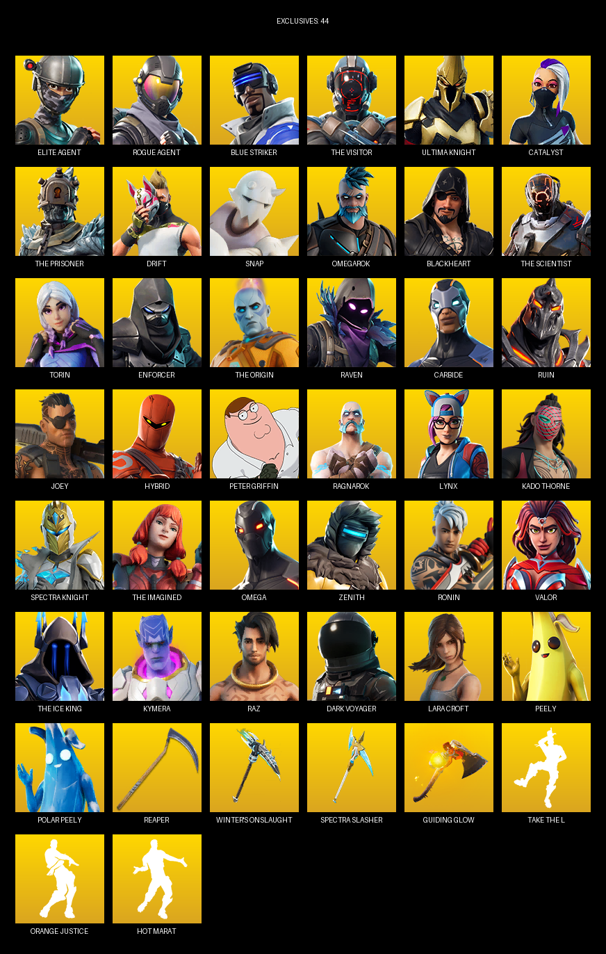 Elite Agent, Omega, Lara Croft, Blue Striker, The Visitor, Ultima Knight, Catalyst, Drift, Snap, Omegarok, Blackheart, Torin, Enforcer, Raven, Carbide, Ruin