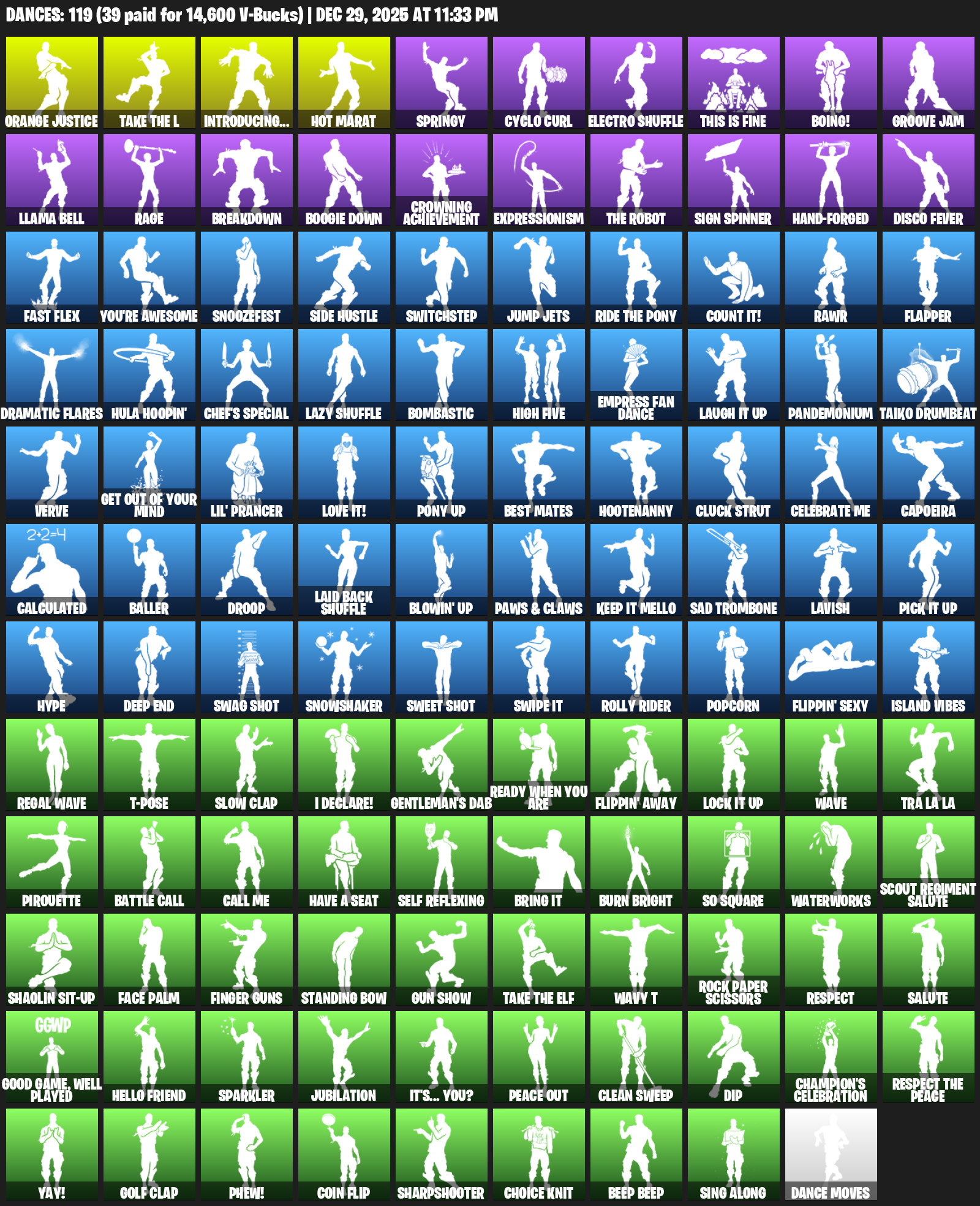 Introducing…, Hot Marat, Orange Justice, Springy, Cyclo Curl, Electro Shuffle, This is Fine, Boing!, Groove Jam, Llama Bell, Rage, Breakdown, Boogie Down, Crowning Achievement, Expressionism, Sign Spinner, Hand-Forged, Disco Fever