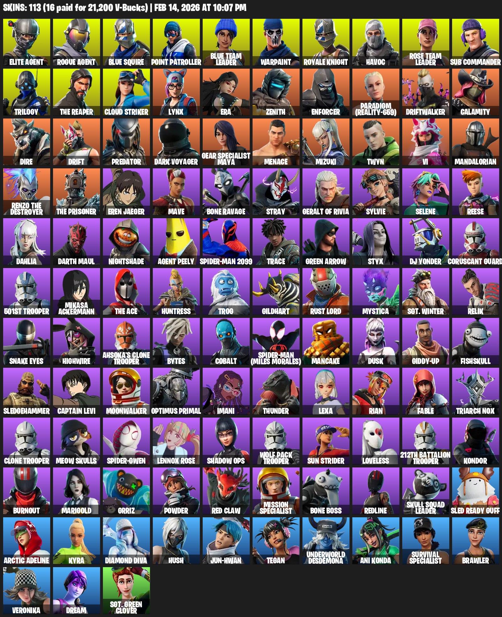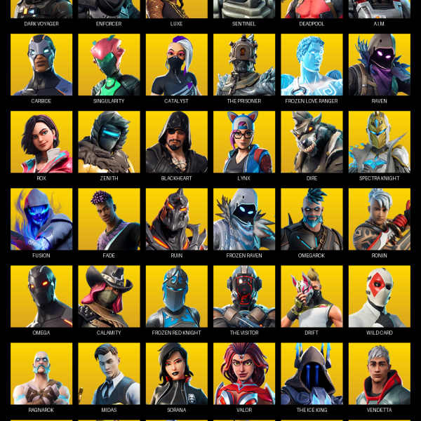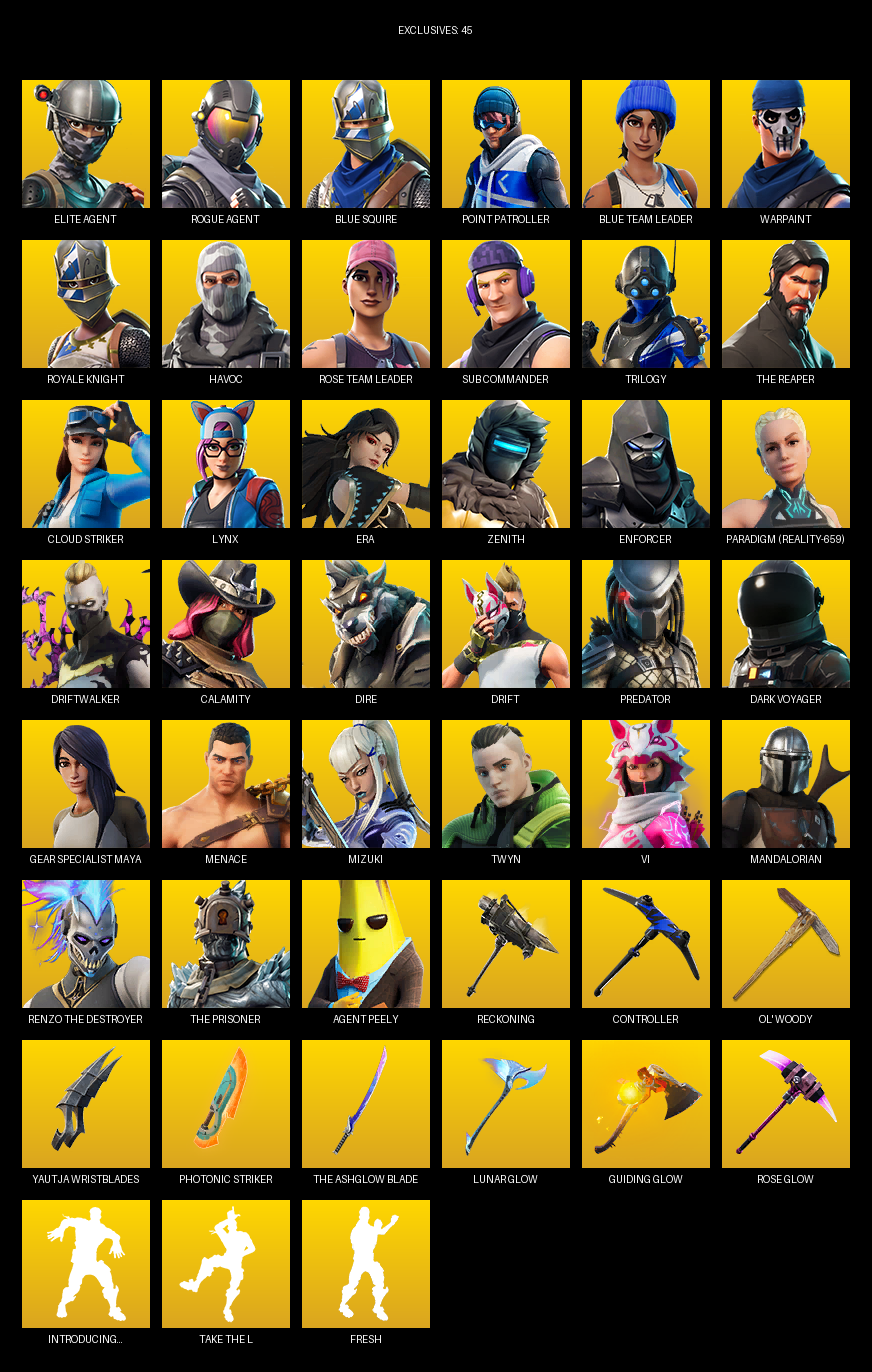 Elite Agent, Blue Squire, Point Patroller, Royale Knight, The Reaper, Gear Specialist Maya, Warpaint, Havoc, Rose Team Leader, Sub Commander, Trilogy, Cloud Striker, Lynx, Era, Zenith, Enforcer, Paradigm (Reality-659), Driftwalker
