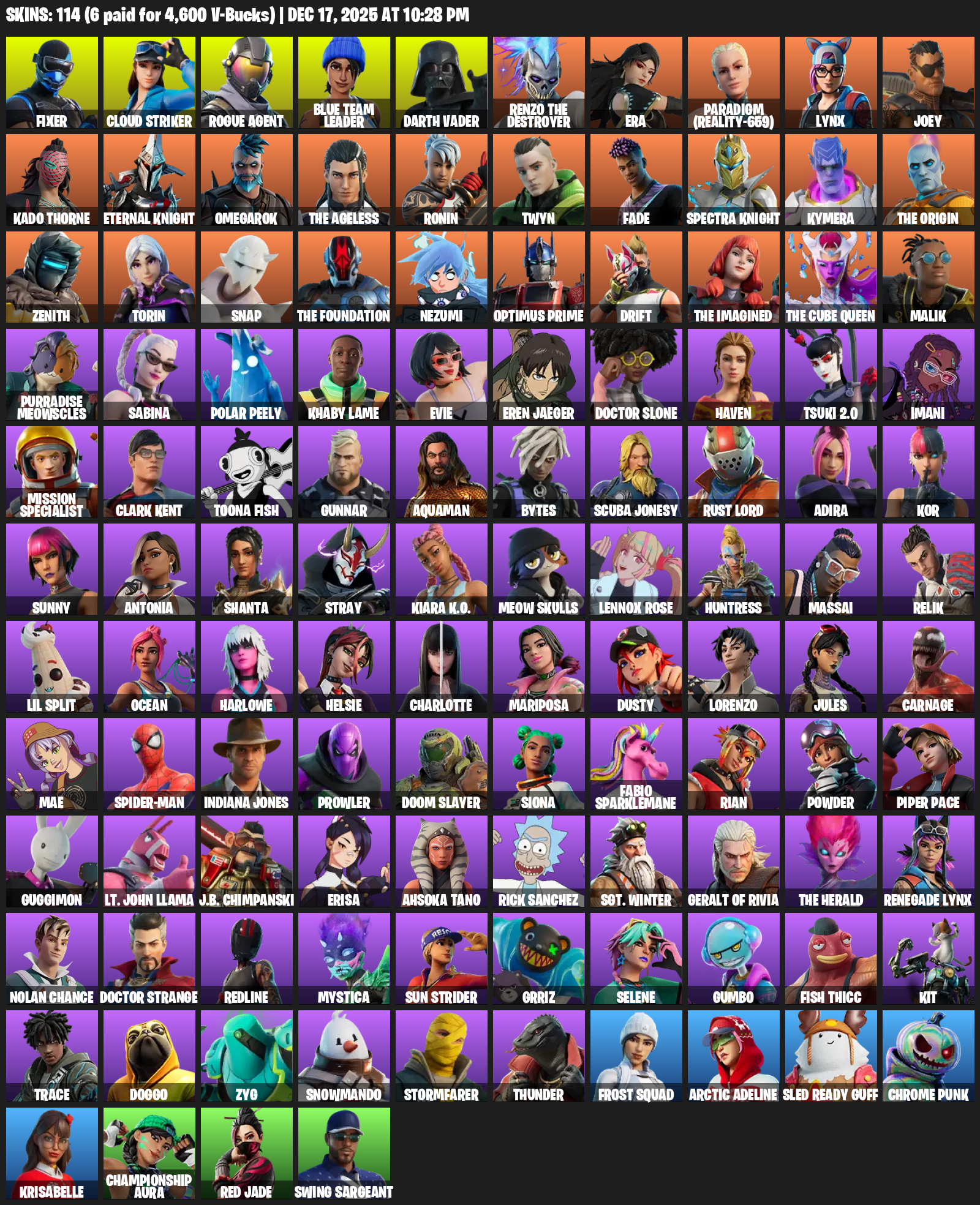 Fixer, Cloud Striker, Rogue Agent, Blue Team Leader, Darth Vader, Renzo the Destroyer, Era, Paradigm (Reality-659), Lynx, Joey, Kado Thorne, Eternal Knight, Omegarok, Ronin, Twyn, Fade, Kymera