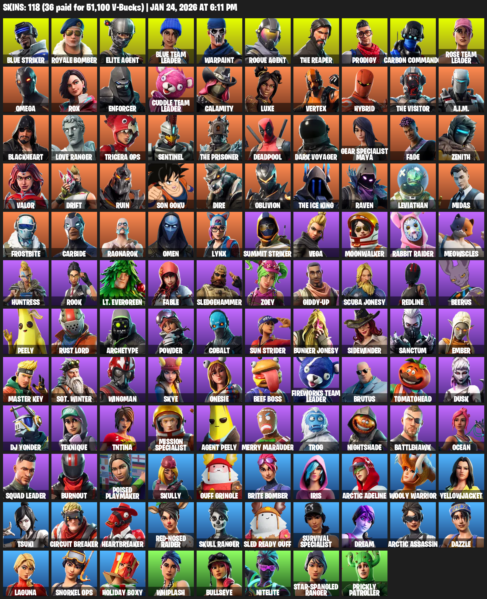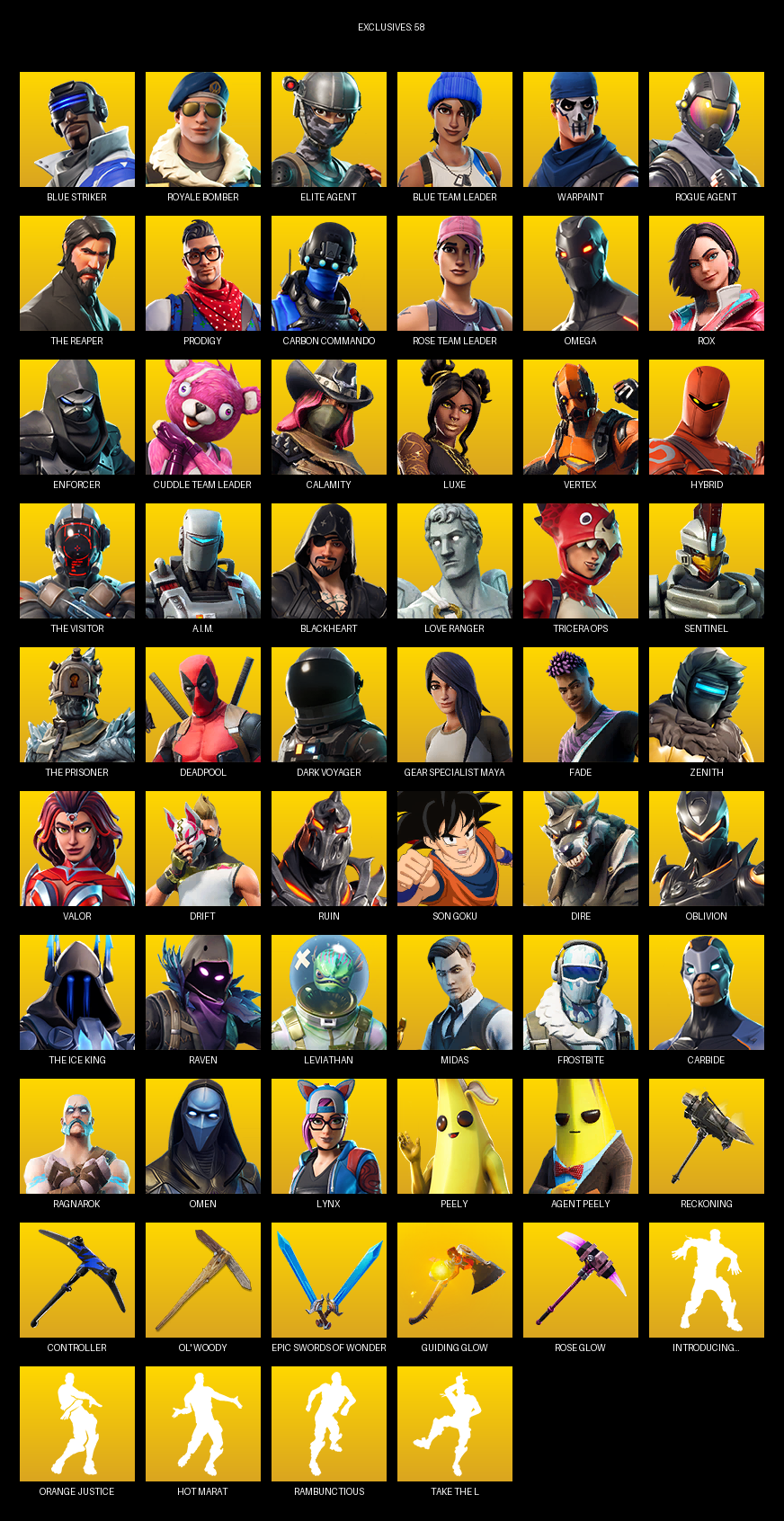 [PC/XBOX] | 118 skins | Take The L | OG STW | The Reaper | Elite Agent | Omega | Blue Striker | Royale Bomber | Blue Team Leader | Warpaint | #KTP4037