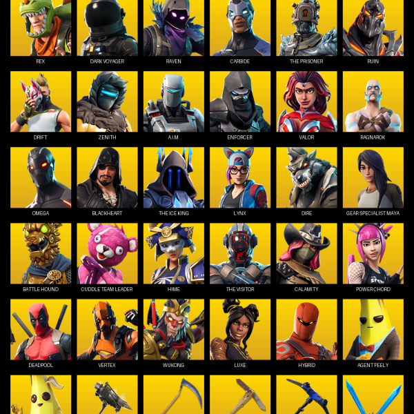 Elite Agent, The Reaper, Omega, Gear Specialist Maya, Blue Striker, Royale Bomber, Warpaint, Prodigy, Carbon Commando, Rose Team Leader, Rox, Enforcer, Calamity, Luxe, Vertex, Hybrid