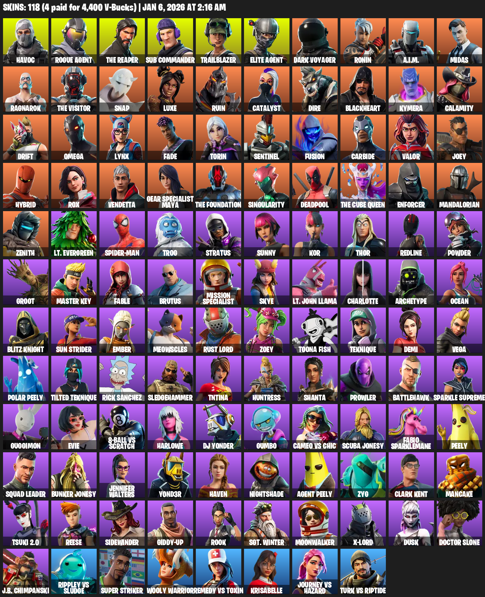 [PC/XBOX] | 118 skins | Take The L | The Reaper | Elite Agent | Omega | Havoc | Rogue Agent | Sub Commander | Trailblazer | Dark Voyager | #TFZ6030