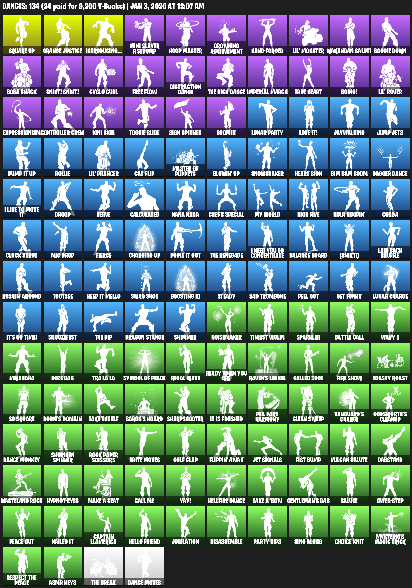 Introducing…, Square Up, Orange Justice, Mini Slayer Fistbump, Hoop Master, Crowning Achievement, Hand-Forged, Lil’ Monster, Wakandan Salute, Boogie Down, Boba Snack, Snikt! Snikt!, Cyclo Curl, Free Flow, Distraction Dance, Imperial March, True Heart, Boing!