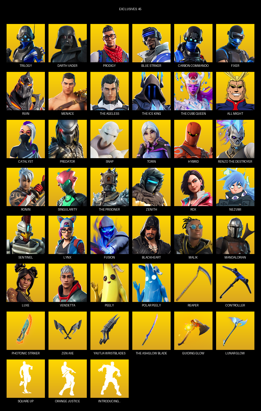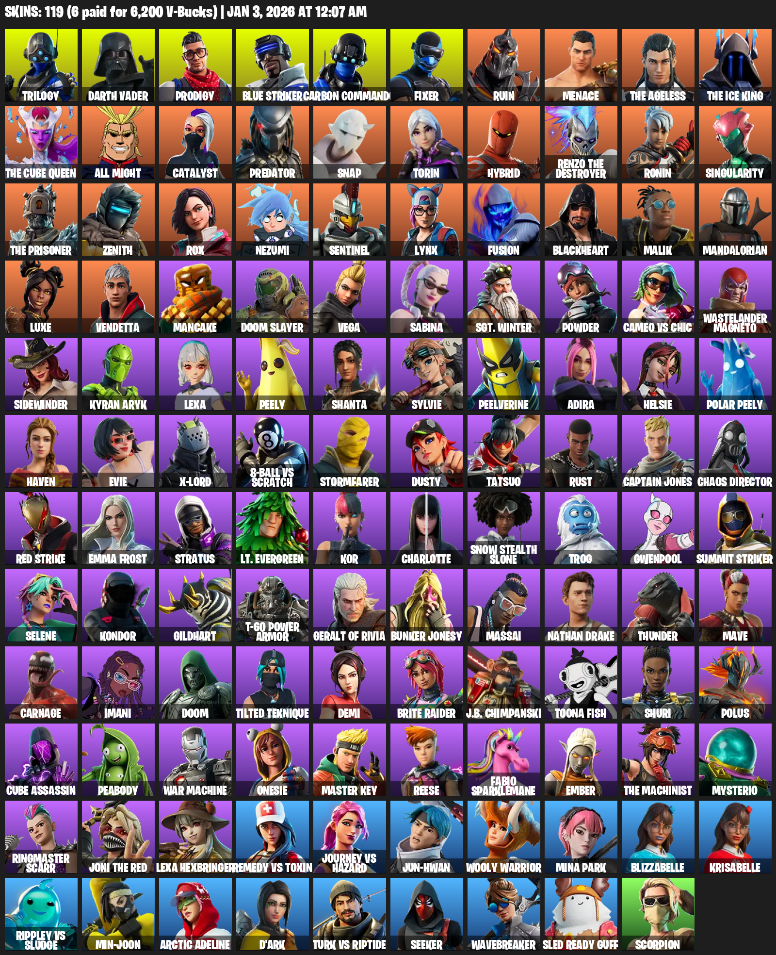 [PC/XBOX] | 119 skins | 500 V-bucks | Reaper Axe | Trilogy | Darth Vader | Prodigy | Blue Striker | Carbon Commando | Fixer | Ruin | Menace | #GUX6991