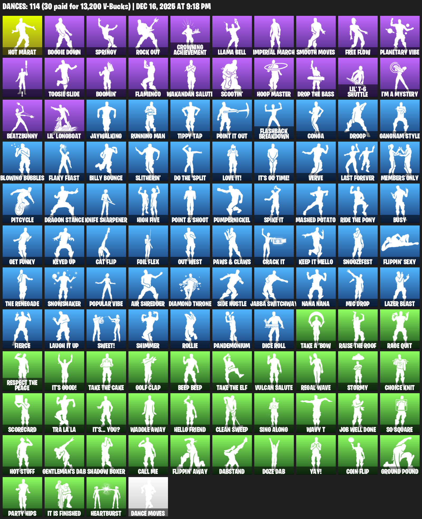 Hot Marat, Boogie Down, Springy, Rock Out, Crowning Achievement, Llama Bell, Imperial March, Smooth Moves, Free Flow, Planetary Vibe, !, Toosie Slide, Boomin’, Flamenco, Wakandan Salute, Scootin’, Hoop Master, Lil’ T-6 Shuttle, I’m a Mystery