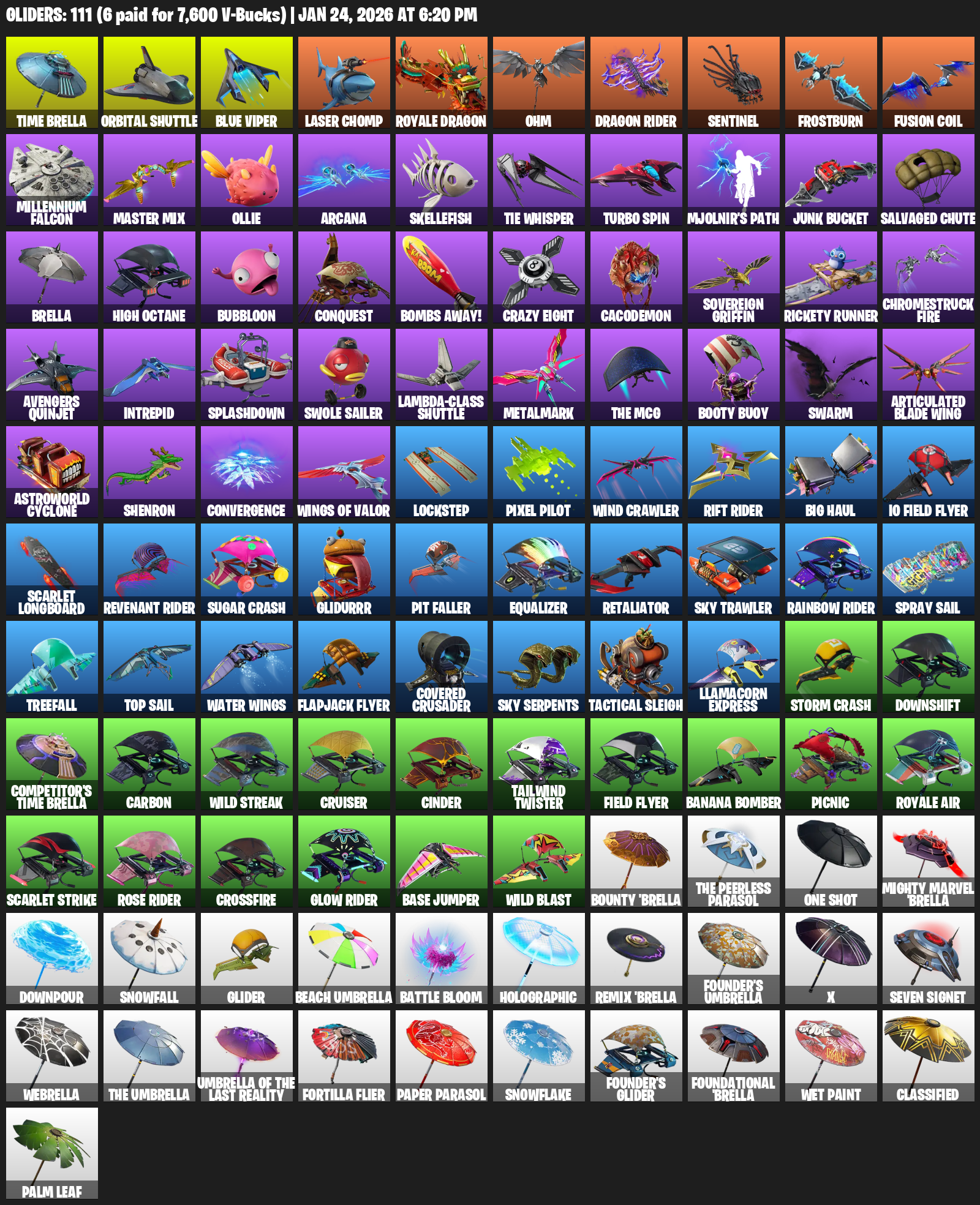 Time Brella, Orbital Shuttle, Laser Chomp, Ohm, Sentinel, Frostburn, Fusion Coil, Millennium Falcon, Ollie, Arcana, Skellefish, TIE Whisper, Turbo Spin, Mjolnir’s Path, Junk Bucket, Salvaged Chute