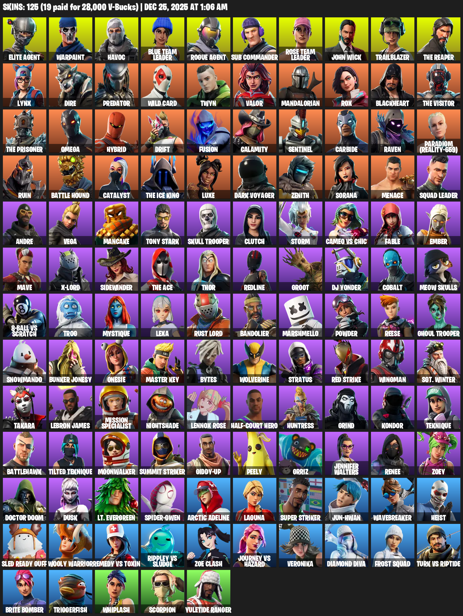 Elite Agent, The Reaper, Omega, Warpaint, Havoc, Blue Team Leader, Sub Commander, John Wick, Trailblazer, Lynx, Dire, Predator, Wild Card, Twyn, Valor, Mandalorian, Rox, Blackheart