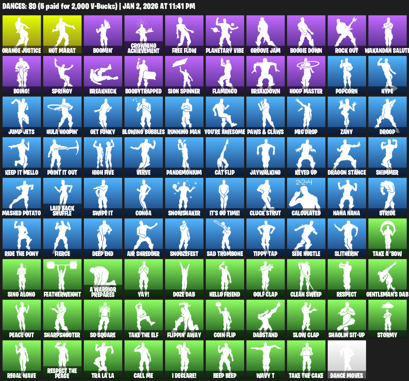 Hot Marat, Boomin’, Crowning Achievement, Free Flow, Planetary Vibe, Groove Jam, Boogie Down, Rock Out, Wakandan Salute, Boing!, Springy, Breakneck, Boobytrapped, Sign Spinner, Flamenco, Breakdown, Hoop Master, Popcorn, Hype