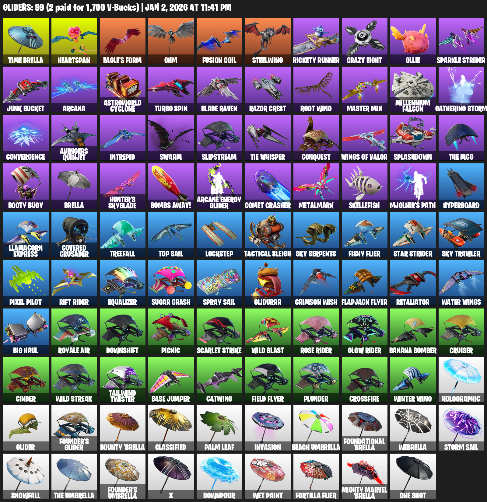 Time Brella, Heartspan, Eagle’s Form, Ohm, Steelwing, Rickety Runner, Crazy Eight, Ollie, Sparkle Strider, Junk Bucket, Arcana, Astroworld Cyclone, Turbo Spin, Razor Crest, Root Wing, Millennium Falcon, Gathering Storm