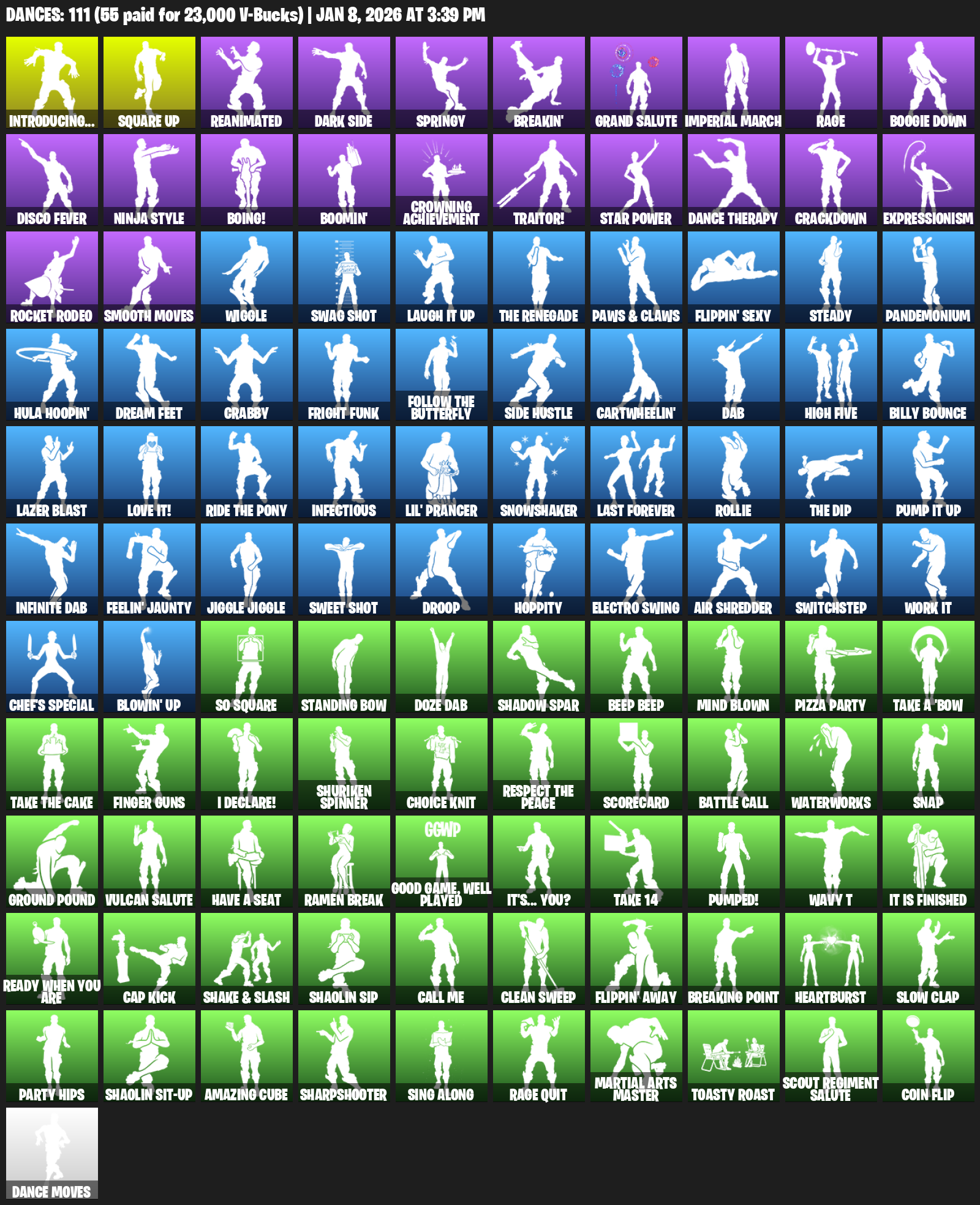 Introducing…, Square Up, Reanimated, Dark Side, Springy, Breakin’, Grand Salute, Imperial March, Rage, Boogie Down, Disco Fever, Ninja Style, Boing!, Boomin’, Crowning Achievement, Traitor!, Dance Therapy, Crackdown, Expressionism