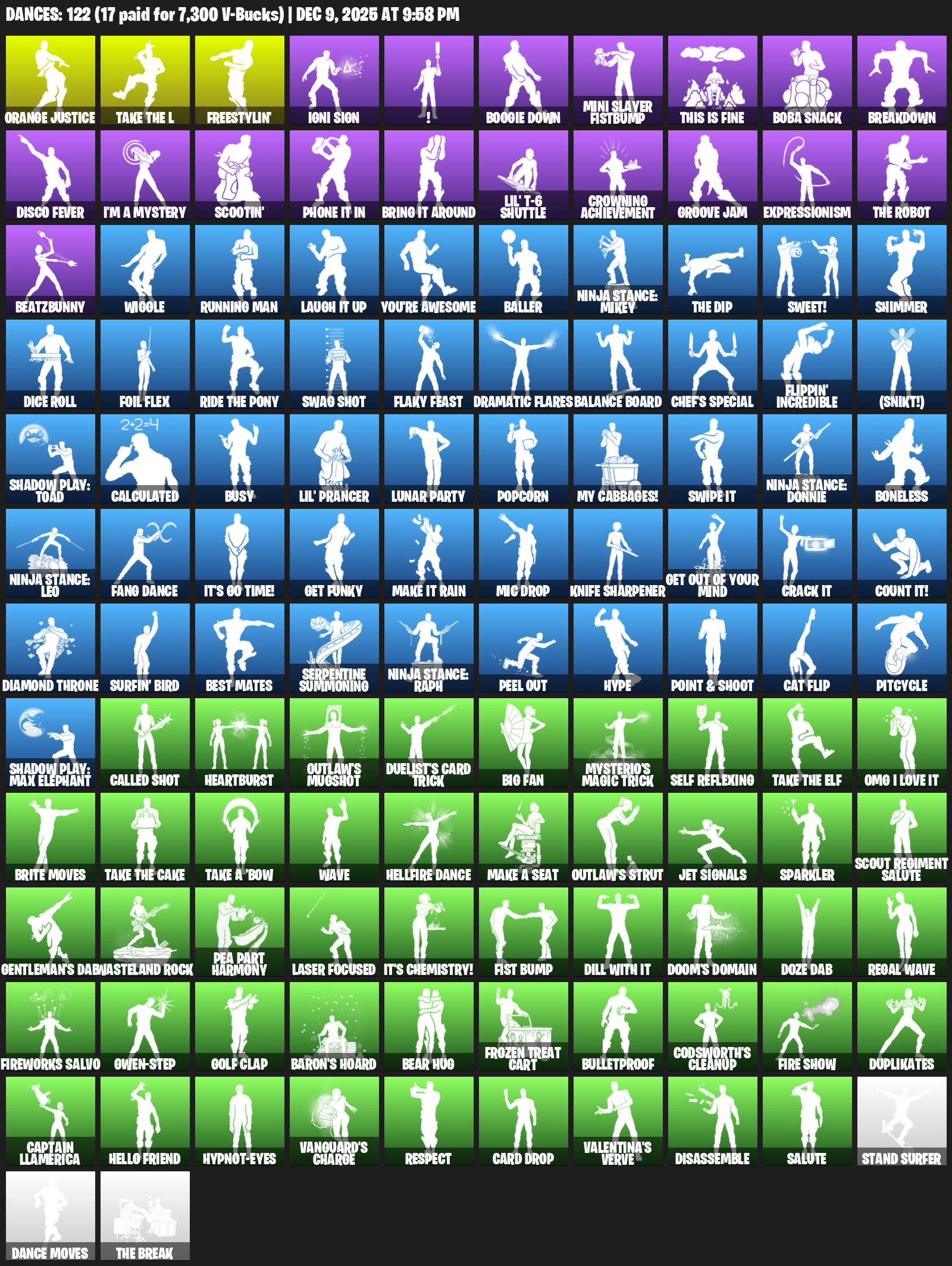 Orange Justice, Freestylin’, Igni Sign, !, Boogie Down, Mini Slayer Fistbump, This is Fine, Boba Snack, Breakdown, Disco Fever, I’m a Mystery, Scootin’, Phone It In, Lil’ T-6 Shuttle, Crowning Achievement, Groove Jam, Expressionism