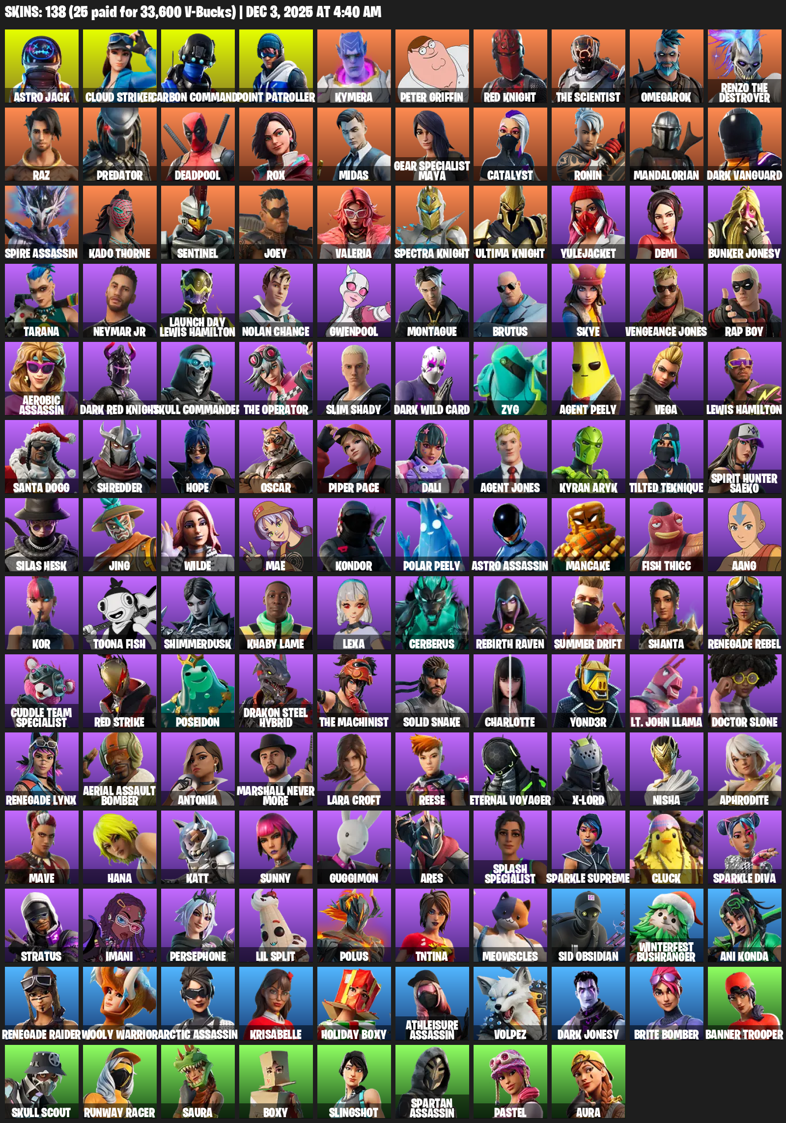 Point Patroller, Gear Specialist Maya, Lara Croft, Renegade Raider, Astro Jack, Cloud Striker, Carbon Commando, Kymera, Peter Griffin, Red Knight, The Scientist, Omegarok, Raz, Predator, Deadpool, Rox, Midas, Catalyst, Ronin