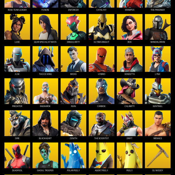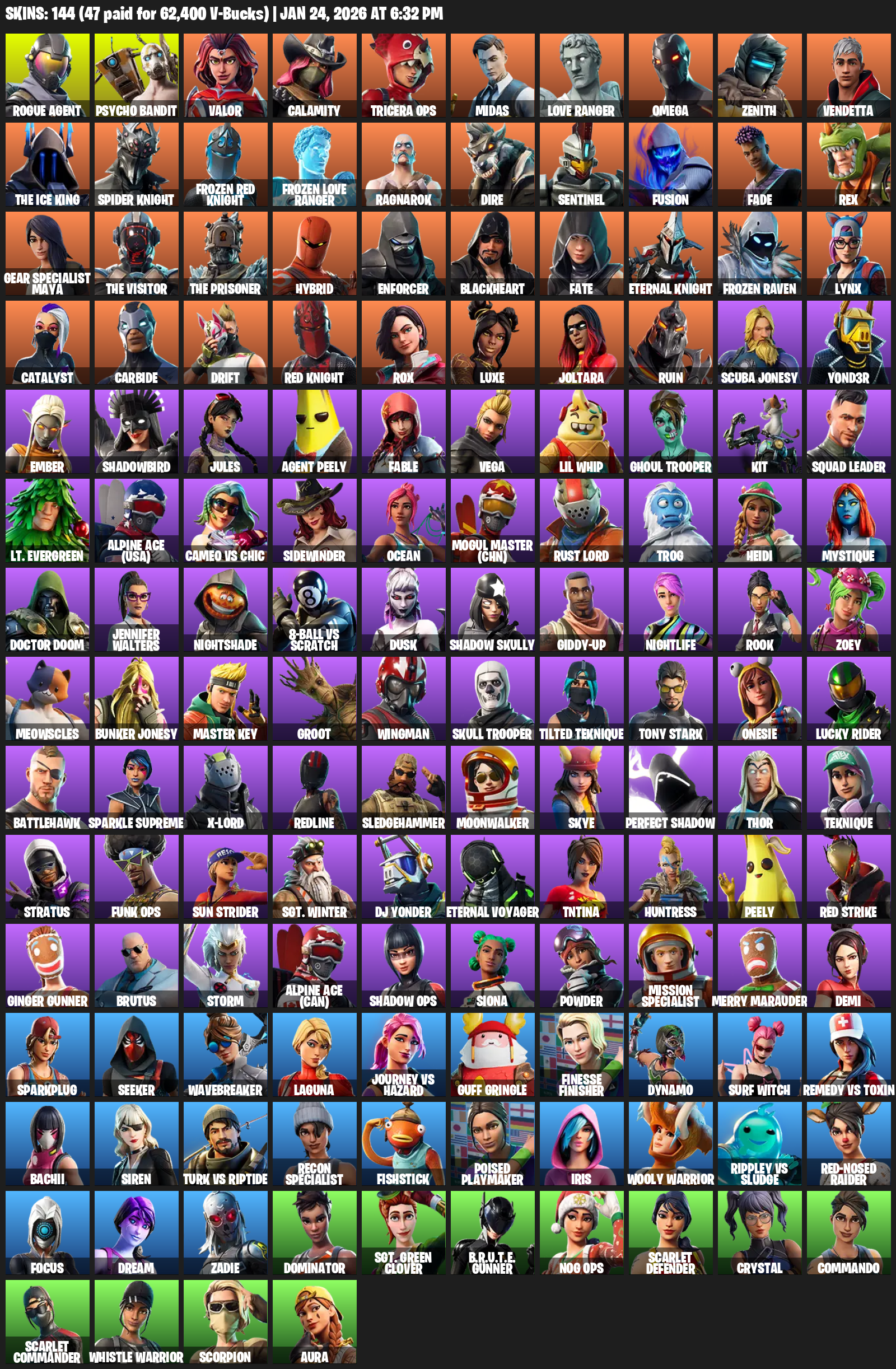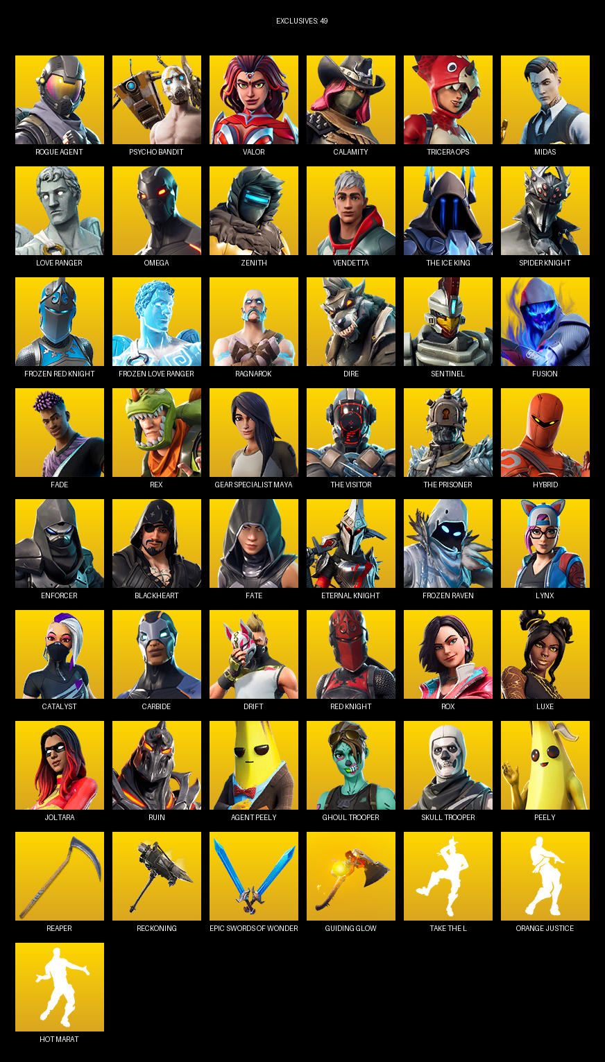 Omega, Gear Specialist Maya, Rogue Agent, Psycho Bandit, Valor, Calamity, Tricera Ops, Midas, Love Ranger, Zenith, Vendetta, The Ice King, Spider Knight, Ragnarok, Dire, Sentinel, Fusion, Fade