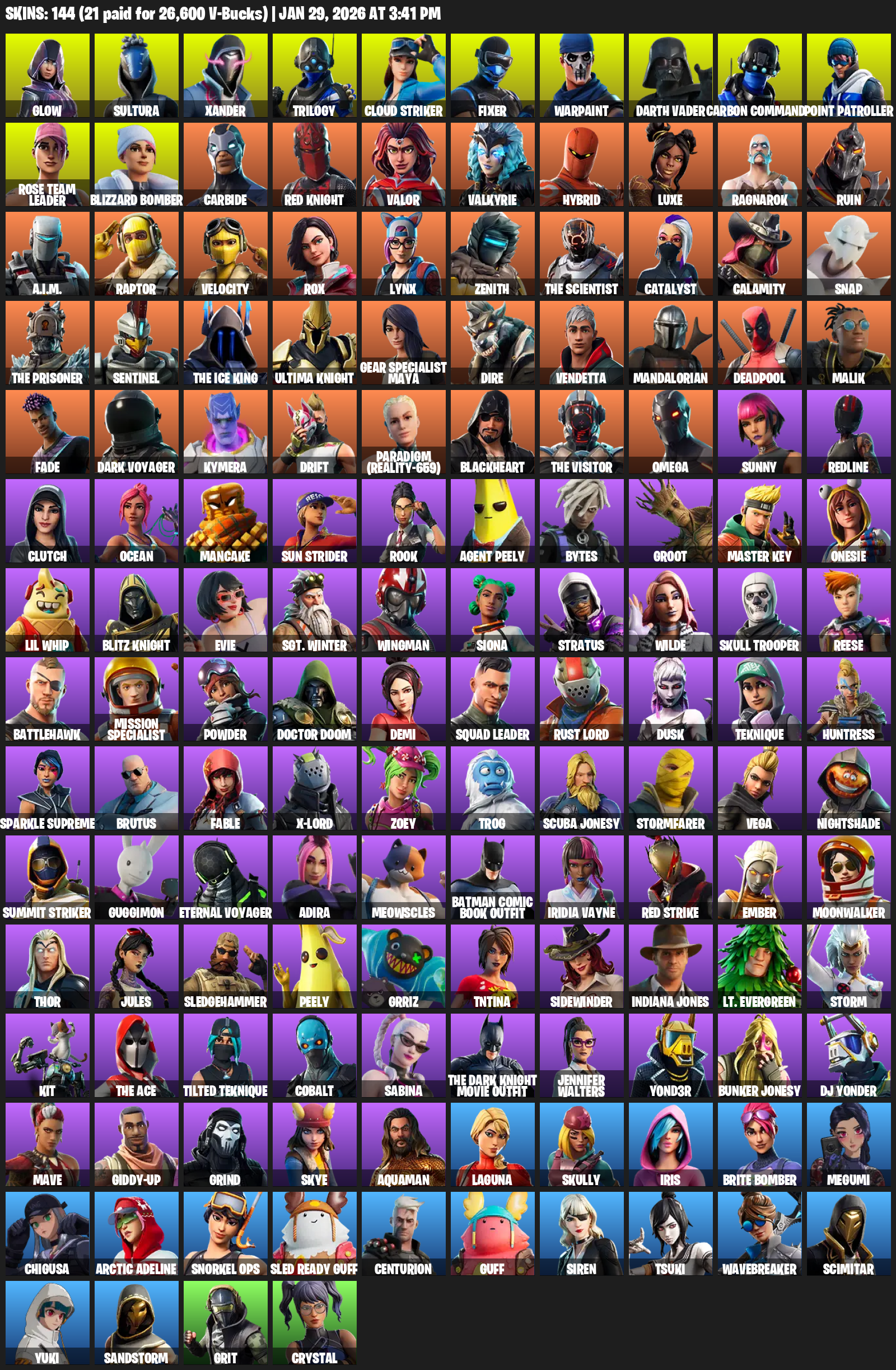 [PC/XBOX] | 144 skins | Take The L | OG STW | Omega | Glow | Sultura | Xander | Trilogy | Cloud Striker | Fixer | Warpaint | Darth Vader | #LFS8948