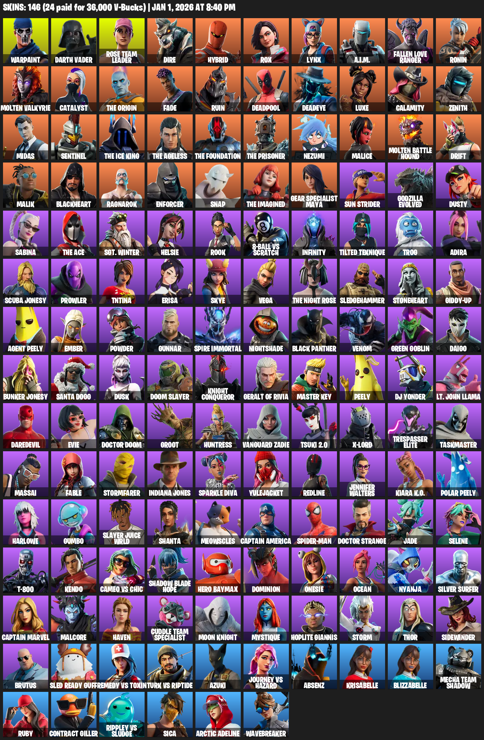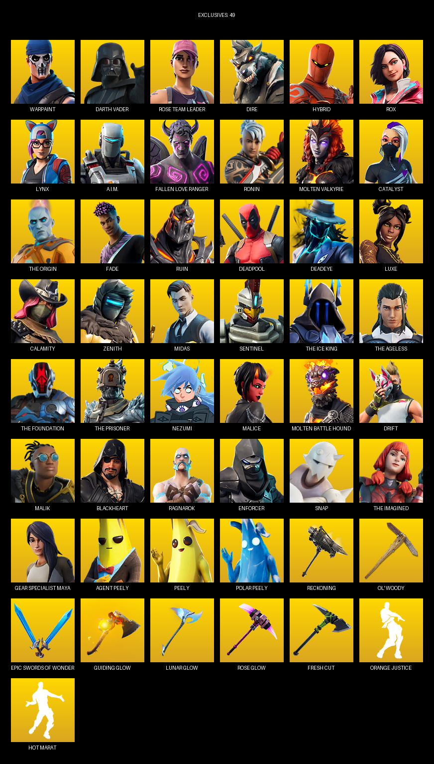 [PC/XBOX] | 146 skins | OG STW | Warpaint | Darth Vader | Rose Team Leader | Dire | Hybrid | Rox | Lynx | A.I.M. | Fallen Love Ranger | #ZAZ8119