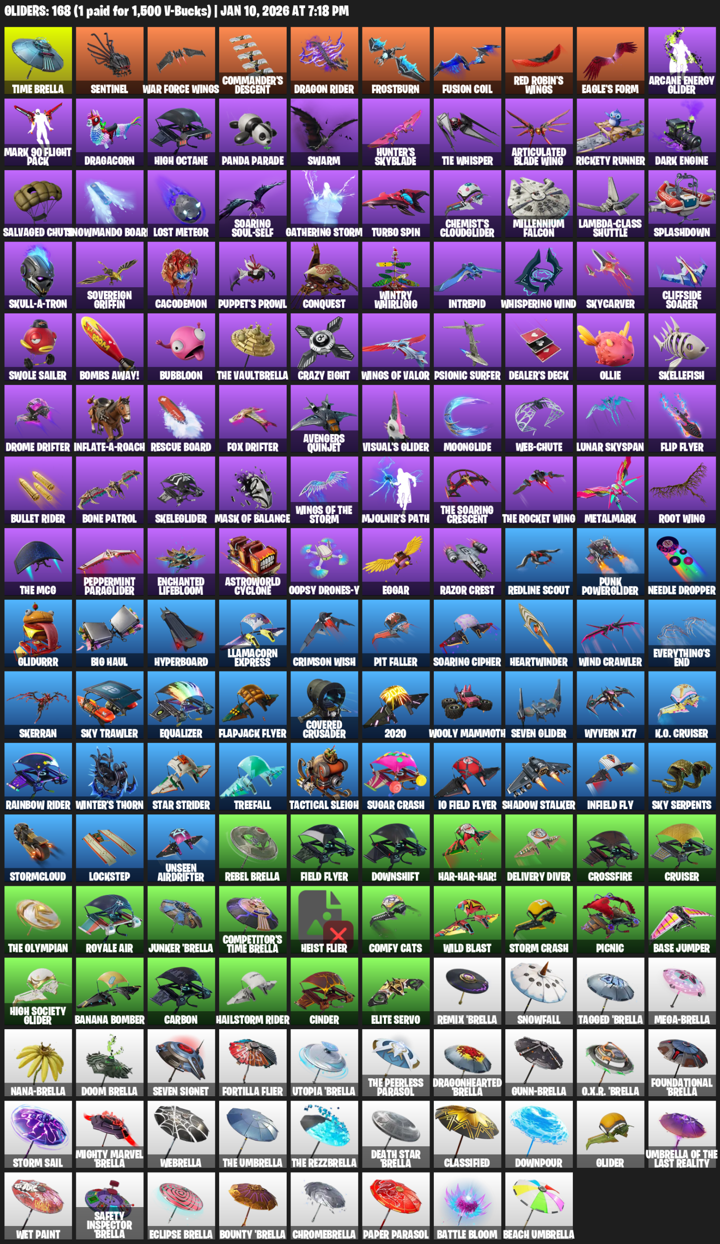 Time Brella, Sentinel, War Force Wings, Commander’s Descent, Frostburn, Fusion Coil, Dragacorn, High Octane, Panda Parade, Swarm, Hunter’s Skyblade, TIE Whisper, Rickety Runner, Dark Engine