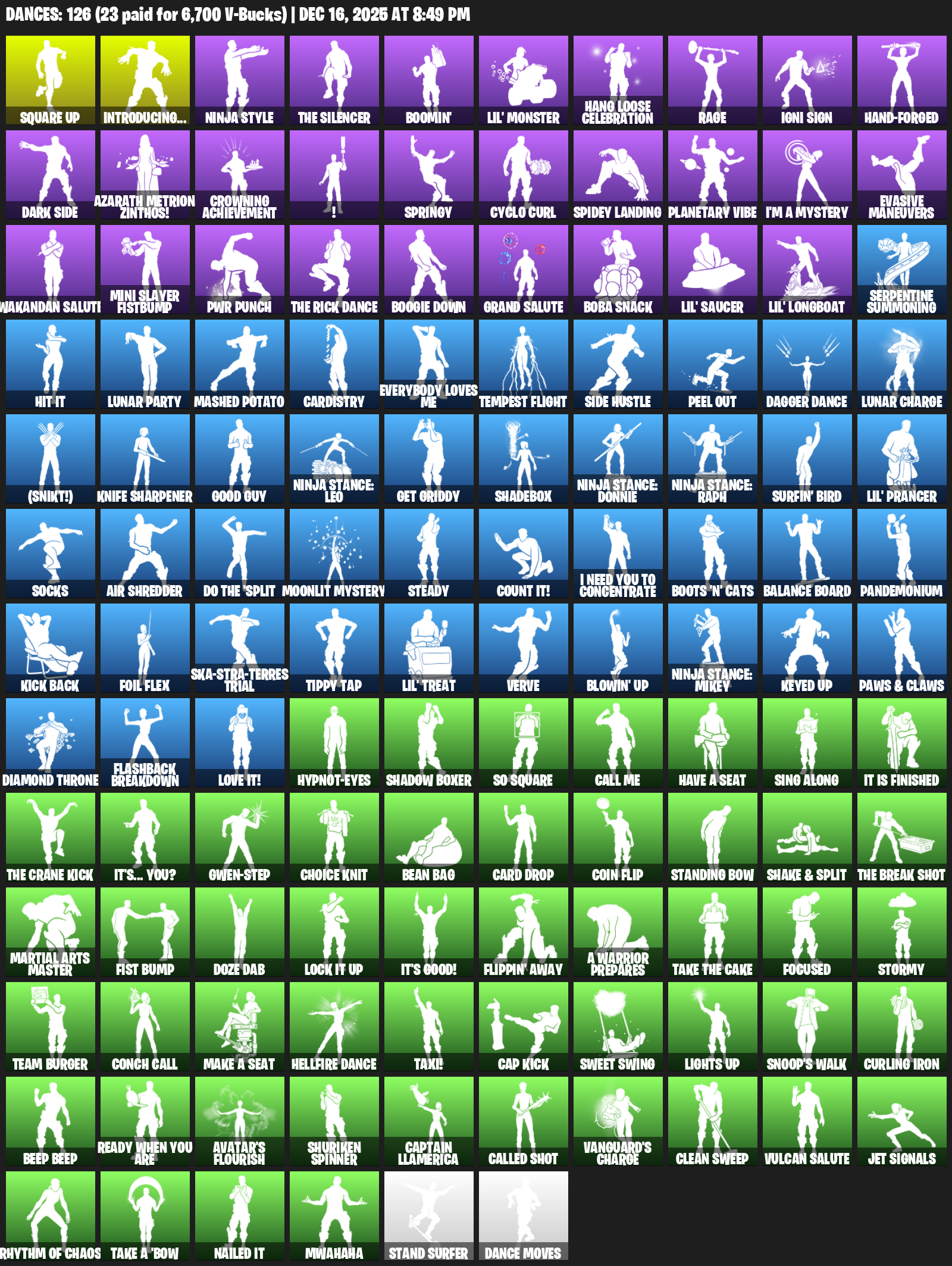 Introducing…, Square Up, Ninja Style, Boomin’, Lil’ Monster, Hang Loose Celebration, Rage, Igni Sign, Hand-Forged, Dark Side, Azarath Metrion Zinthos!, Crowning Achievement, !, Springy, Cyclo Curl, Spidey Landing, Planetary Vibe, I’m a Mystery, Evasive Maneuvers