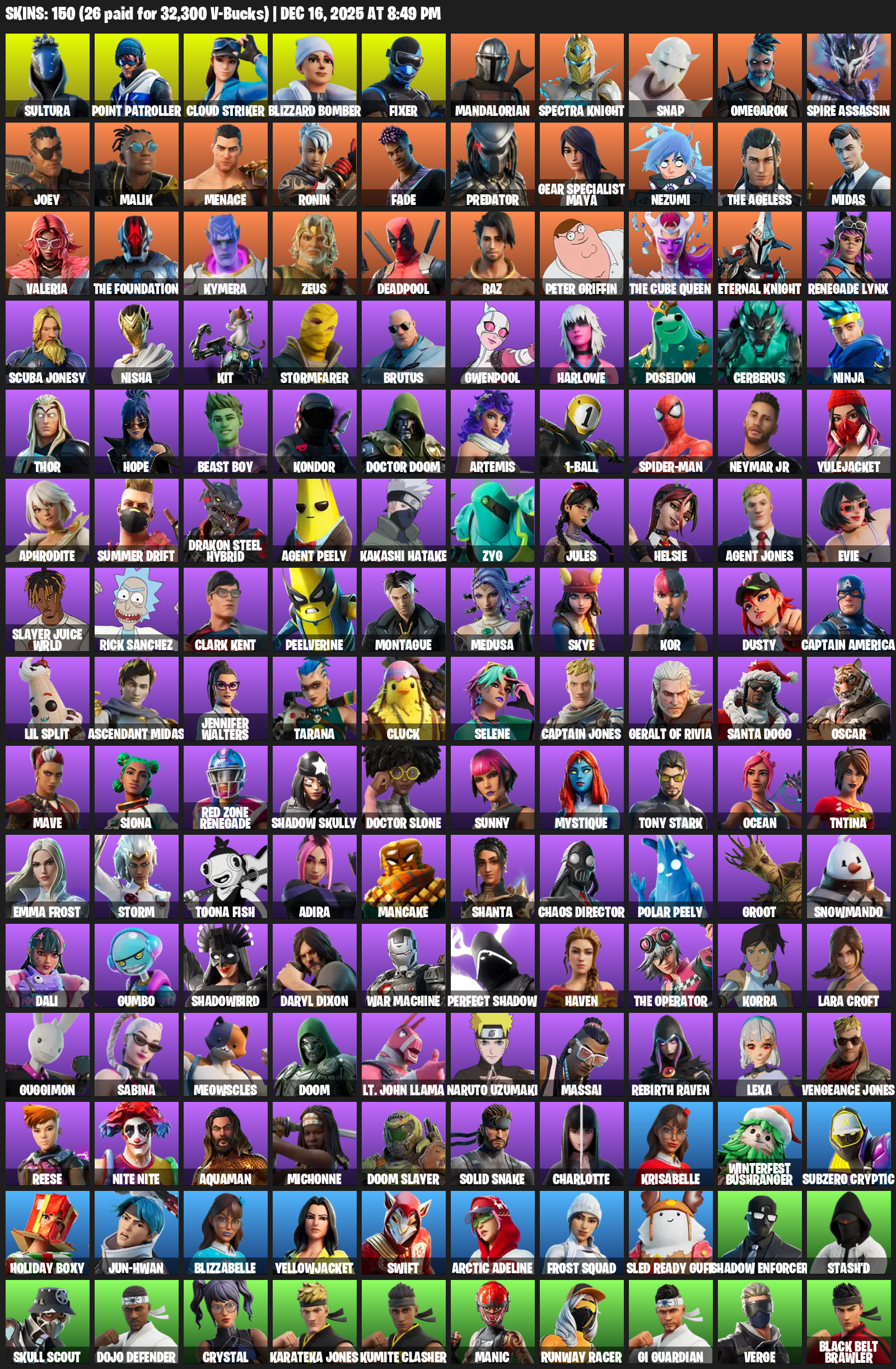 Point Patroller, Gear Specialist Maya, Lara Croft, Sultura, Cloud Striker, Blizzard Bomber, Fixer, Mandalorian, Spectra Knight, Snap, Omegarok, Spire Assassin, Joey, Malik, Menace, Ronin, Fade, Predator, Nezumi, The Ageless