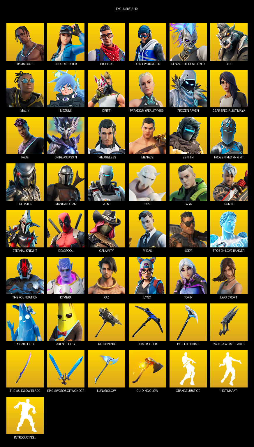 [PC/XBOX] | 154 skins | 1800 V-bucks | Travis Scott | Lara Croft | Cloud Striker | Prodigy | Point Patroller | Renzo the Destroyer | Dire | #VAY0032