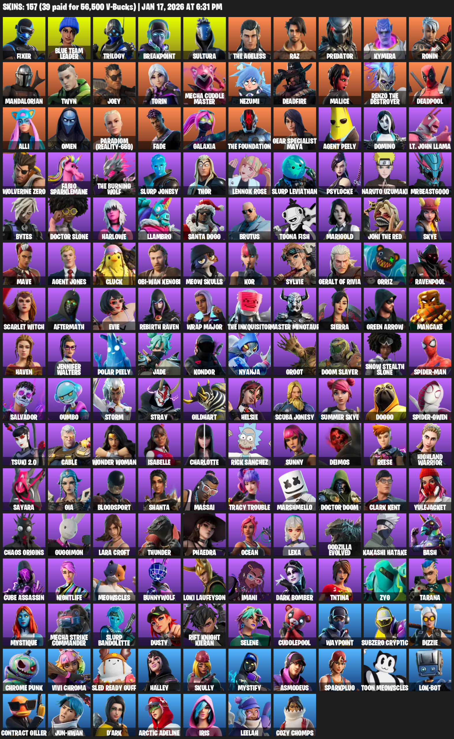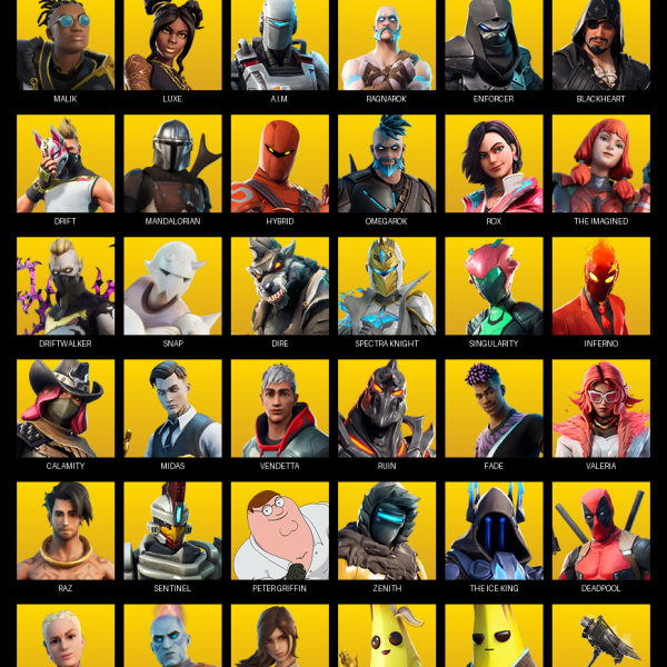 Gear Specialist Maya, Lara Croft, Fixer, Blue Team Leader, Trilogy, Breakpoint, Sultura, The Ageless, Raz, Predator, Kymera, Ronin, Mandalorian, Twyn, Joey, Torin, Mecha Cuddle Master, Nezumi, Deadfire, Malice